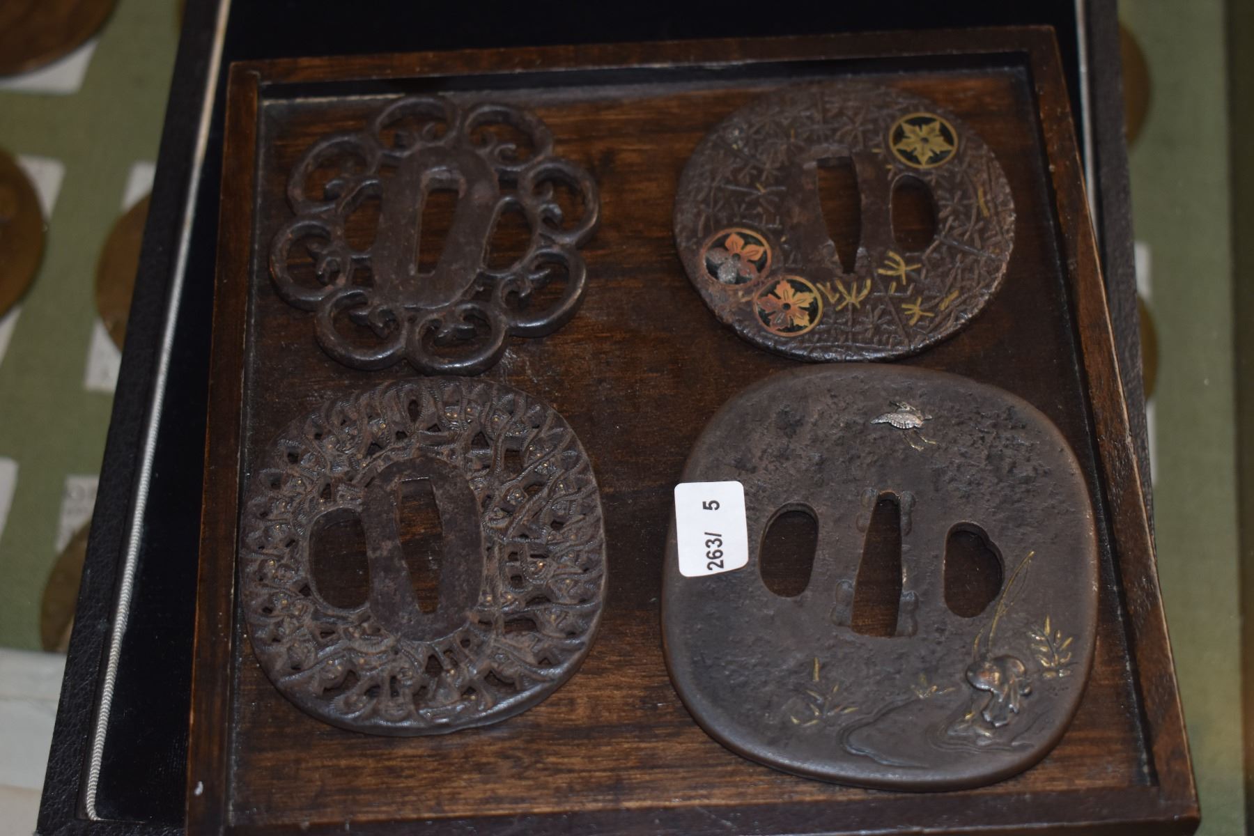 ANTIQUE JAPANESE IRON "TSUBAS" (SAMURAI) SWORD GUARDS (DOES NOT INCLUDE STAND)