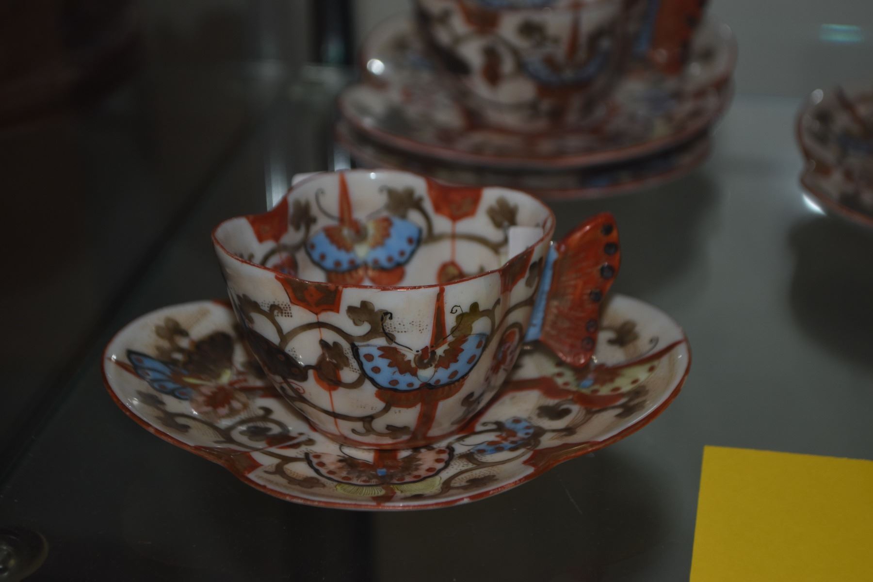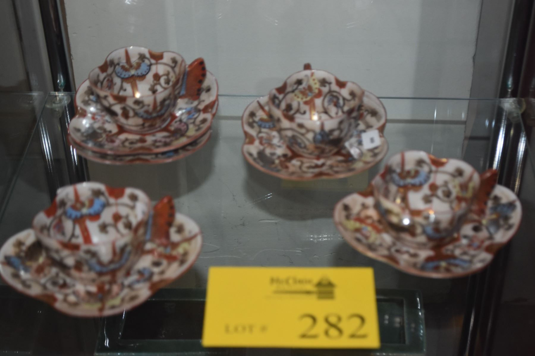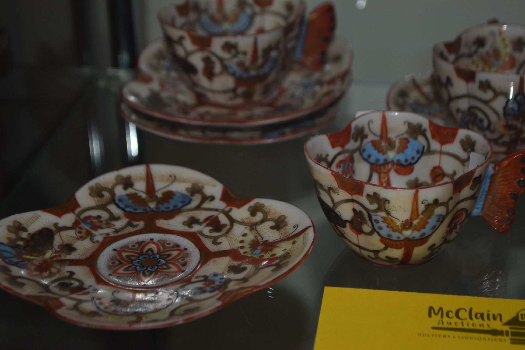 ANTIQUE JAPANESE MEIJI KUTANI HAND PAINTED TEA CUPS & SAUCERS (9 PCS)