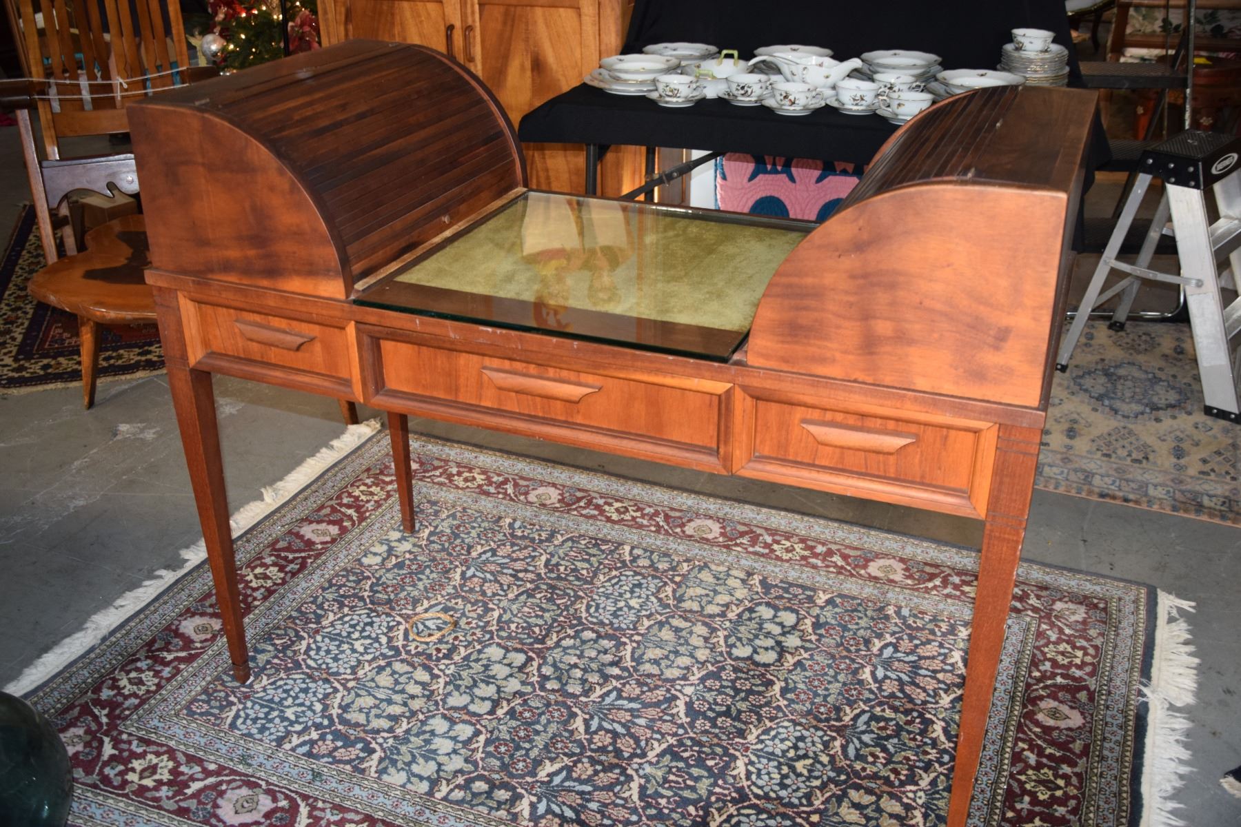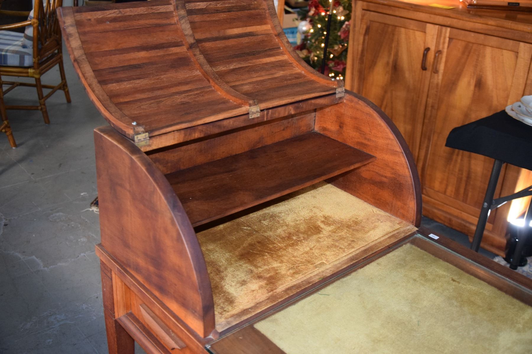 ANTIQUE KOA WOOD DESK W/BREADBOX STYLE SIDES & ONE DRAWER