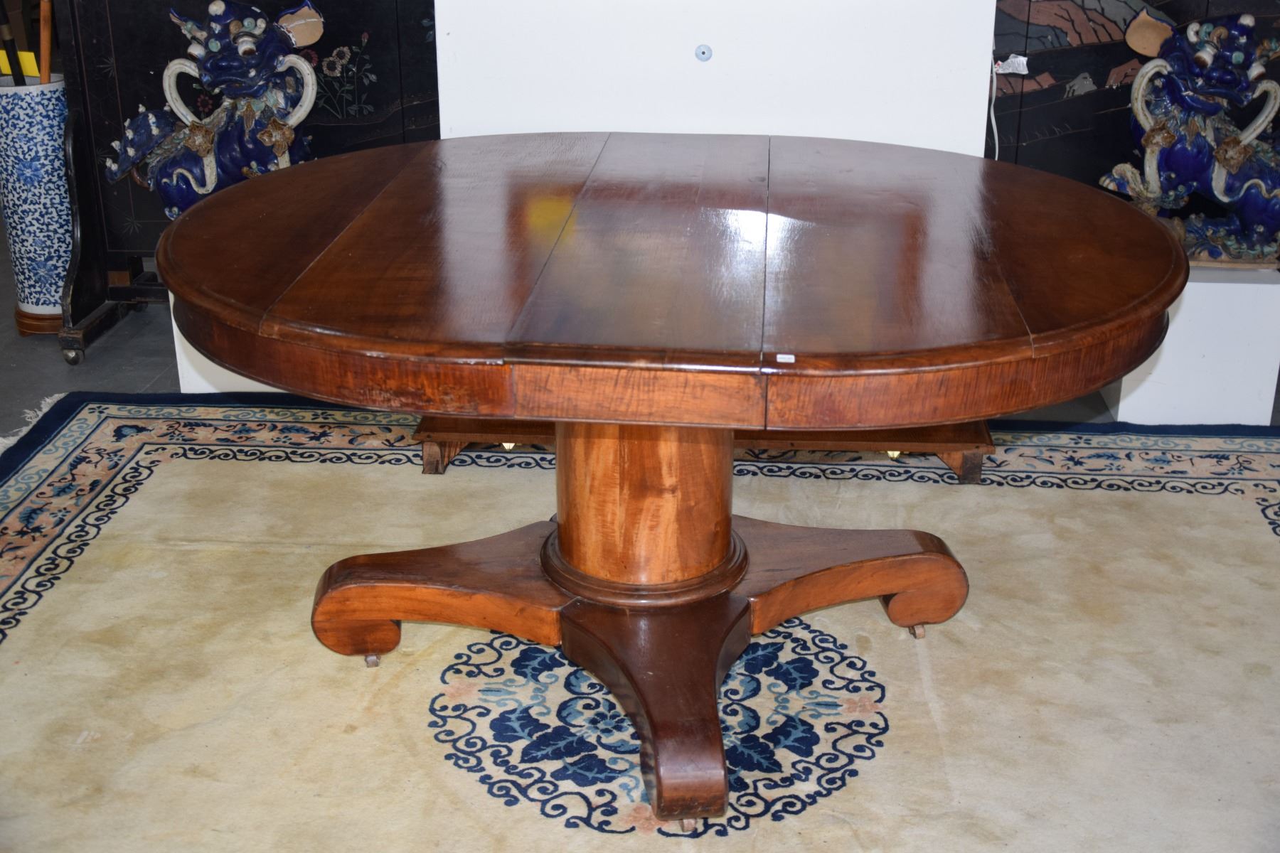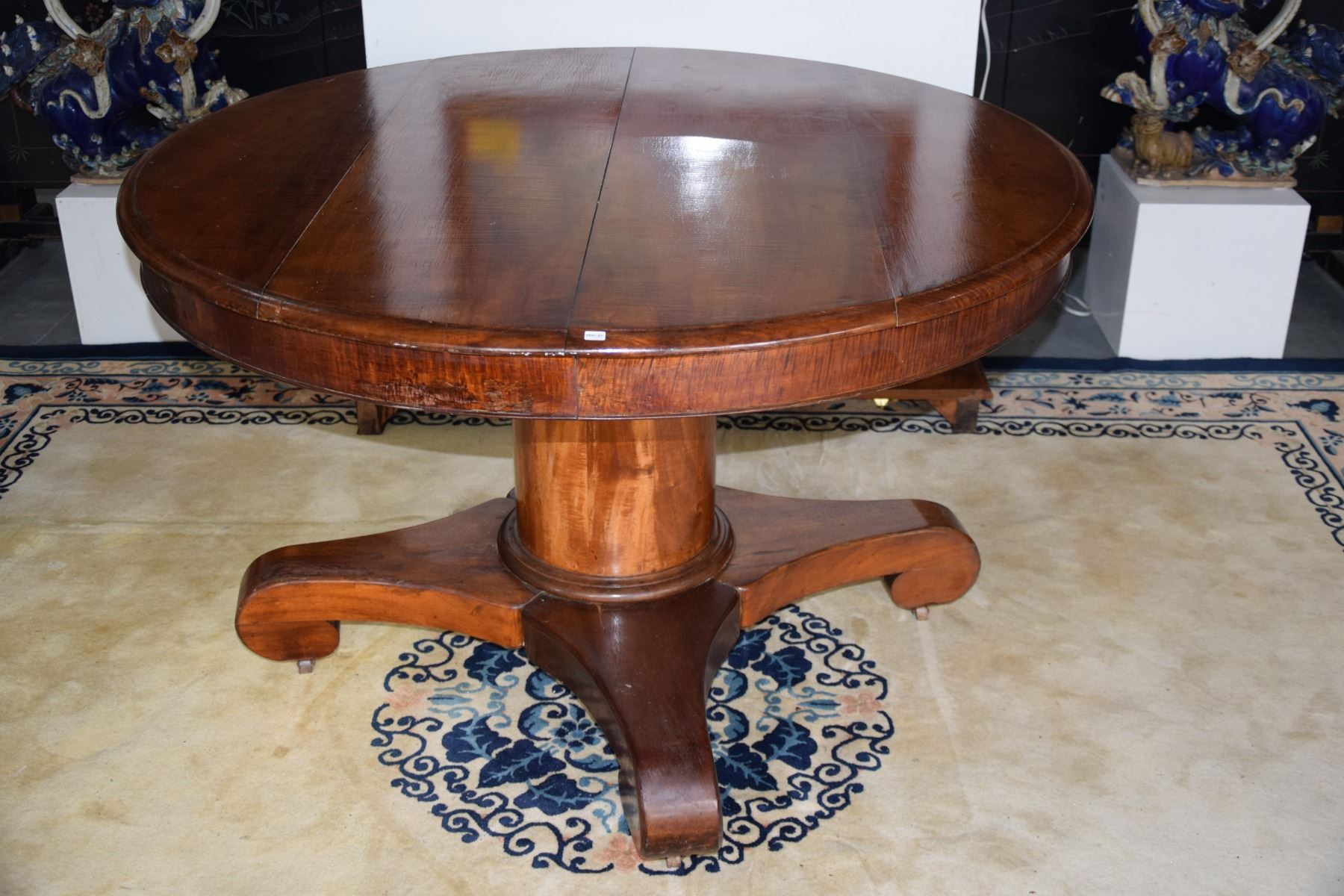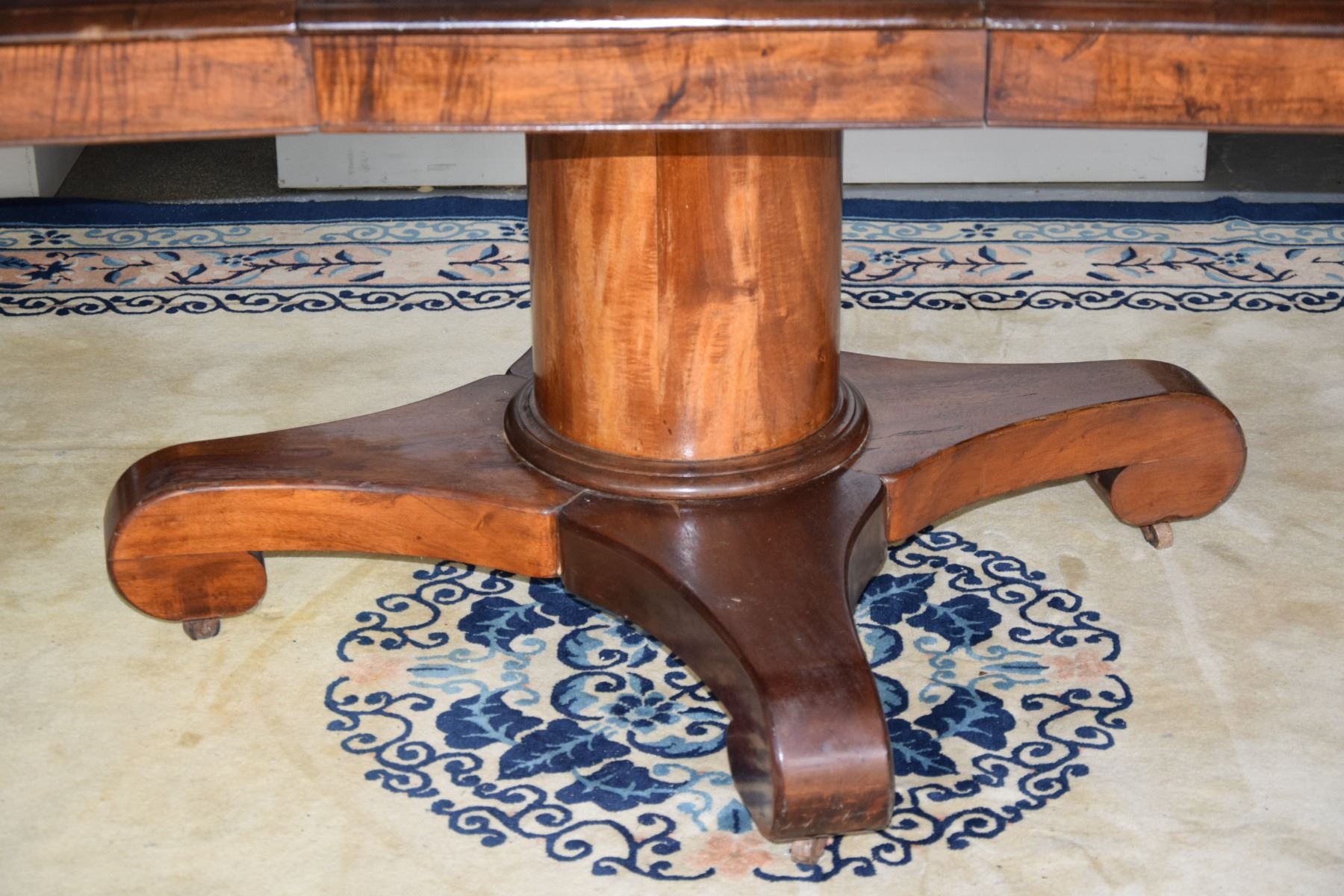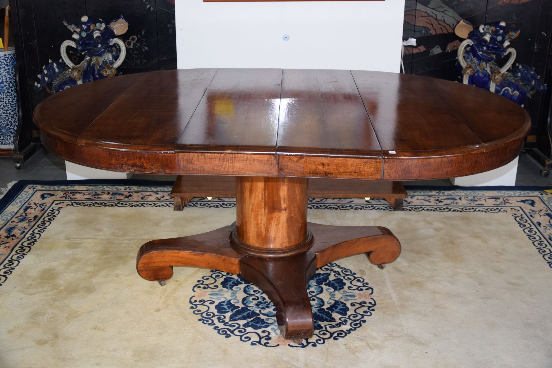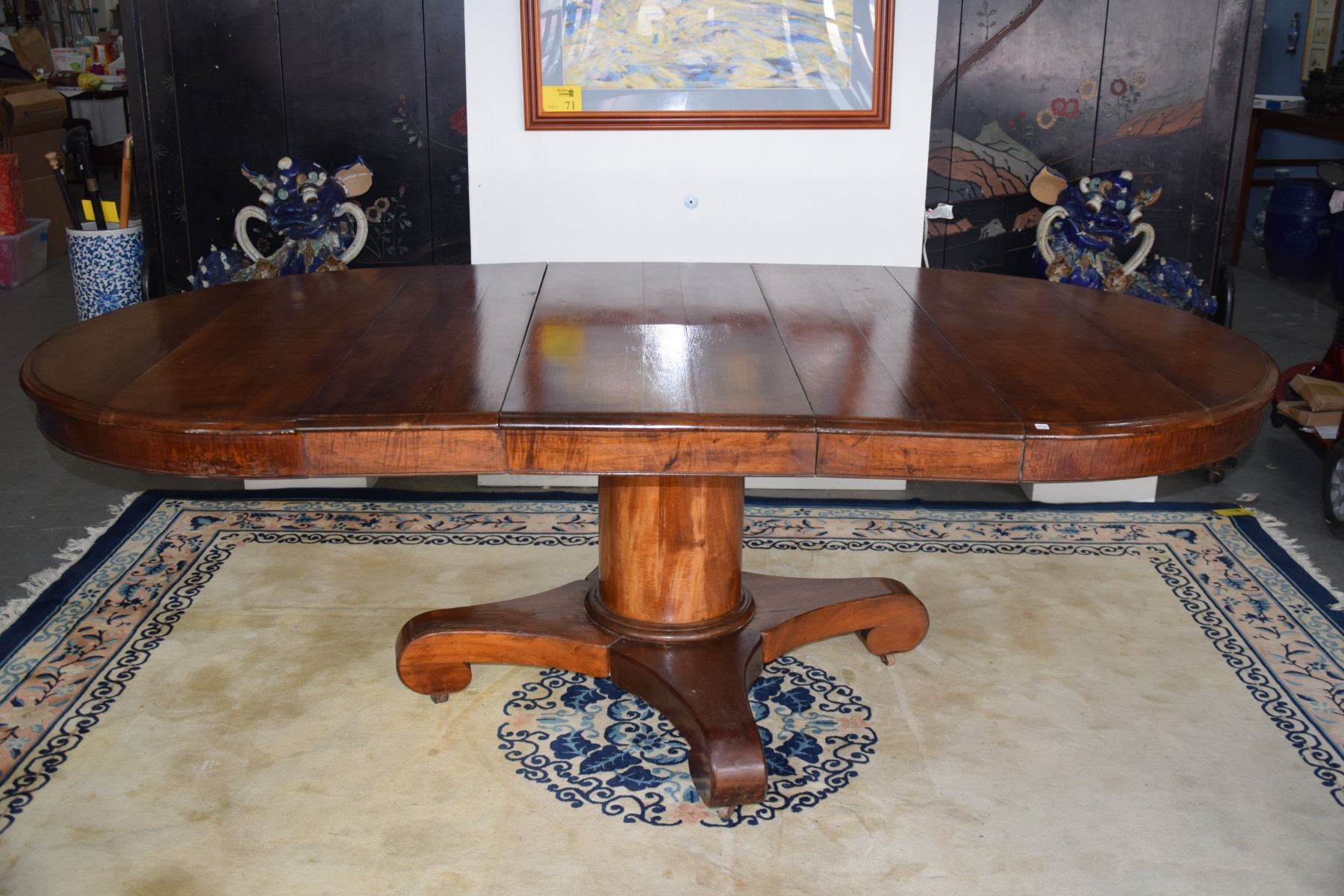 ANTIQUE OLD GROWTH KOA DINING TABLE WITH 3 LEAVES; (47 1/2" D - EXTENDS TO 88" L) (FROM REV. CLARENCE GUERREIRO COLLECTION)