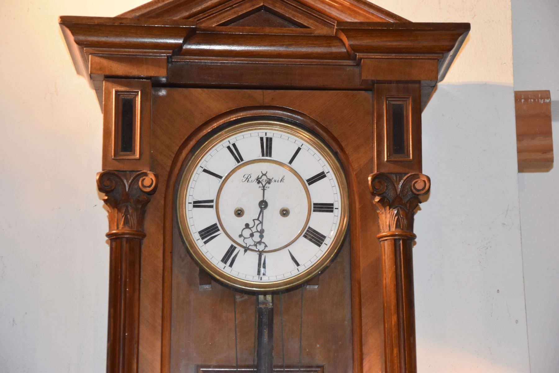 ANTIQUE R. NIEMTIK BRUAN PENDULUM WALL CLOCK (48")