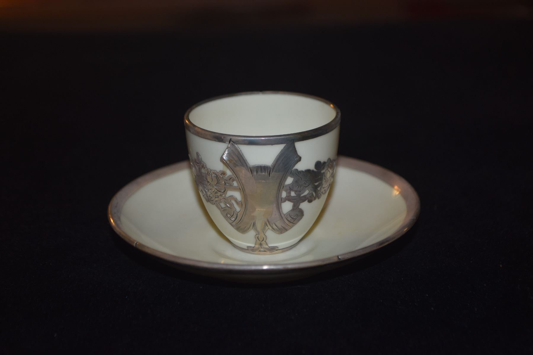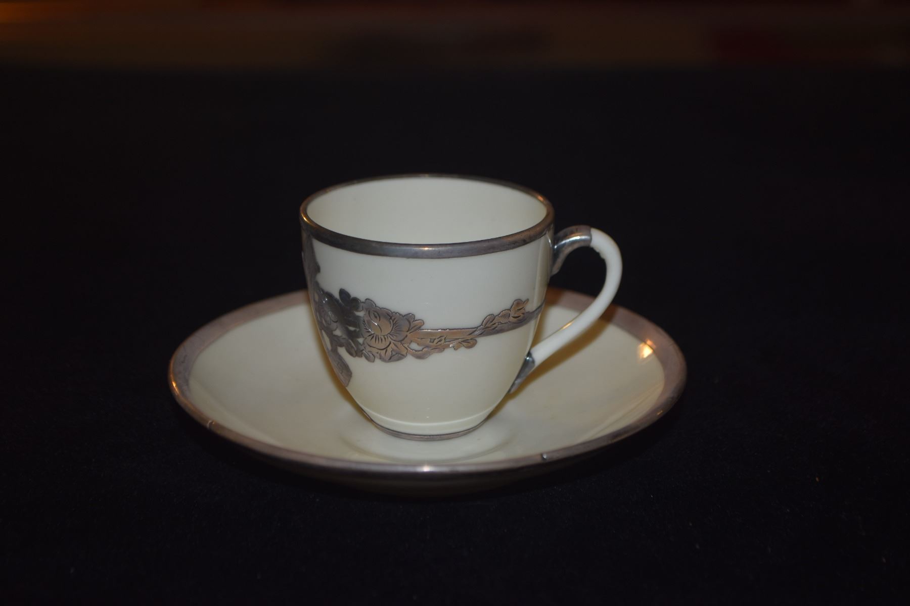 ANTIQUE SILVER OVERLAY DEMITASSE CUPS & SAUCERS, MARKED ENGLAND (12 PCS)
