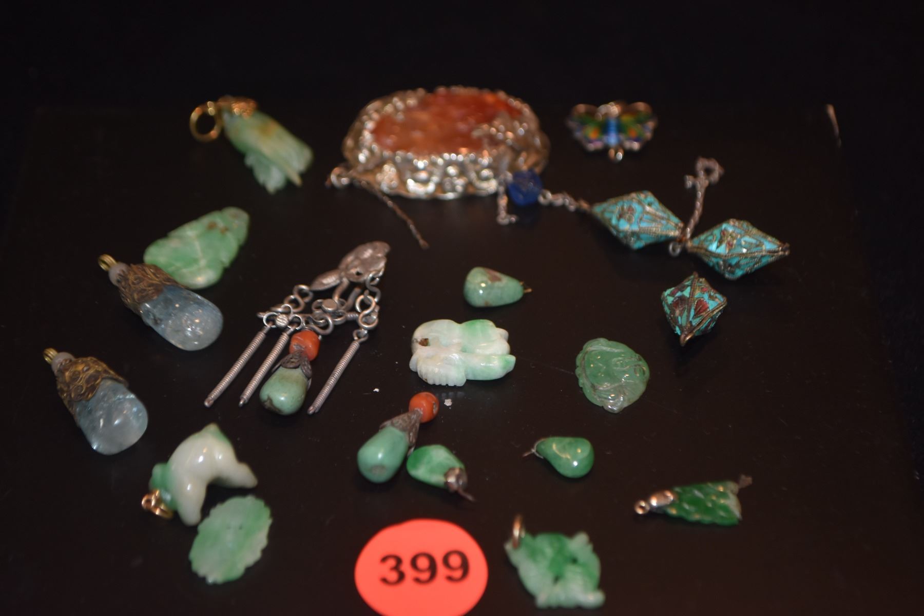 ANTIQUE/VINTAGE CHINESE JADE, CORAL, AQUAMARINE, CARNELIAN, KINGFISHER PIECES