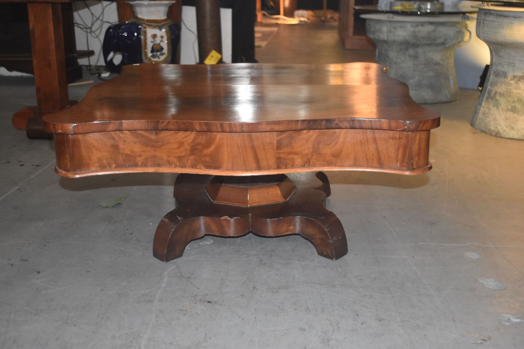 ANTIQUE WOODEN PEDESTAL TABLE (34" X 34")