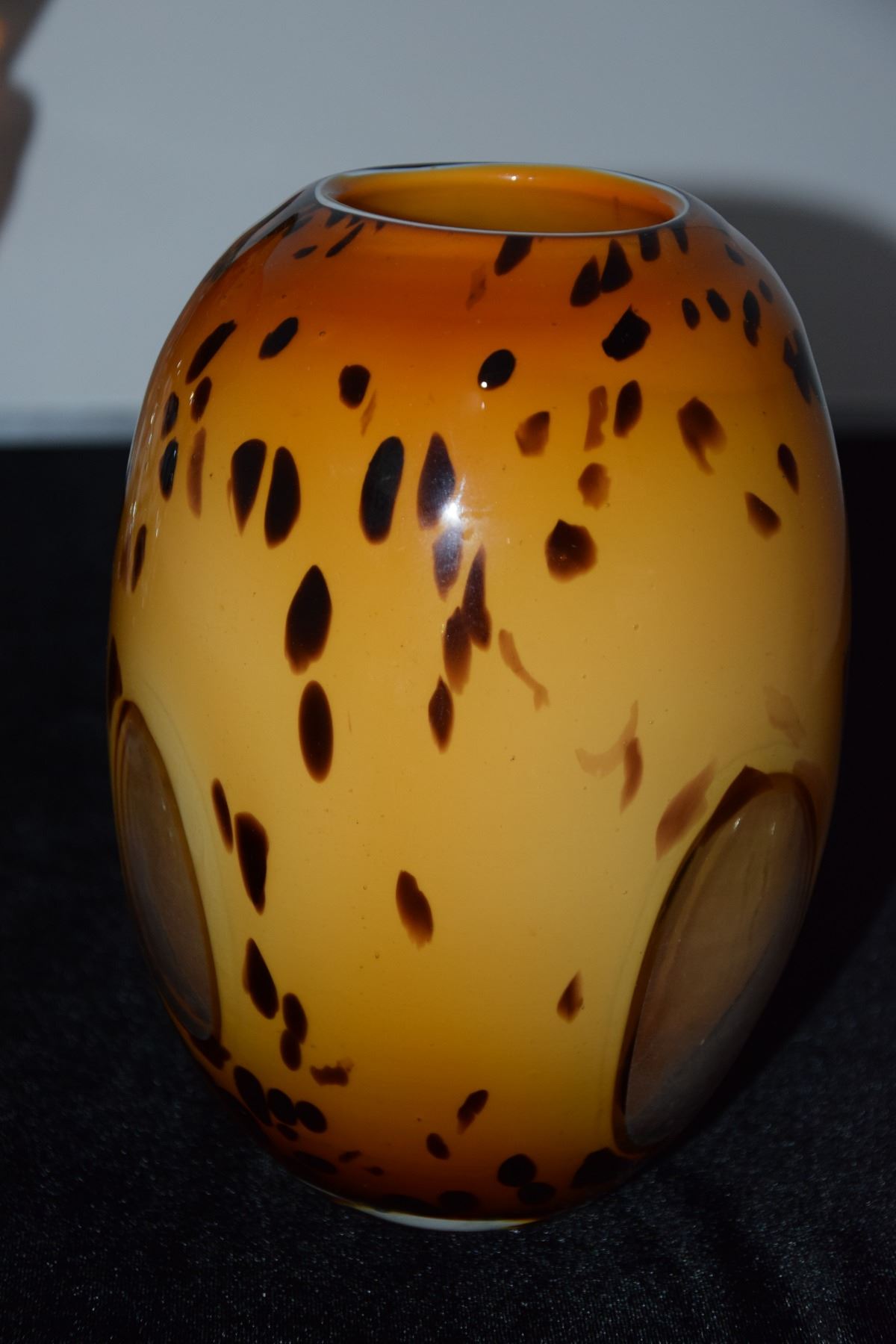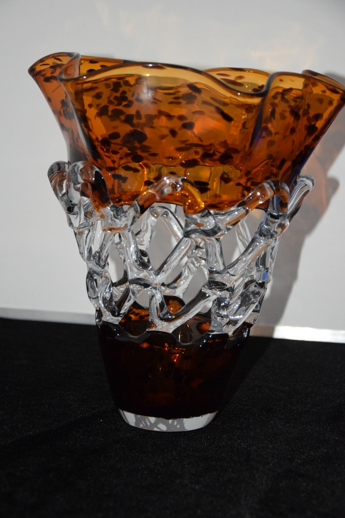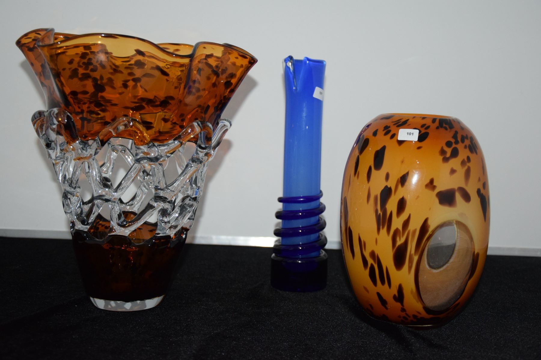 ARIS AMBER WEB GLASS VASE & ART GLASS VASES (3 PCS)
