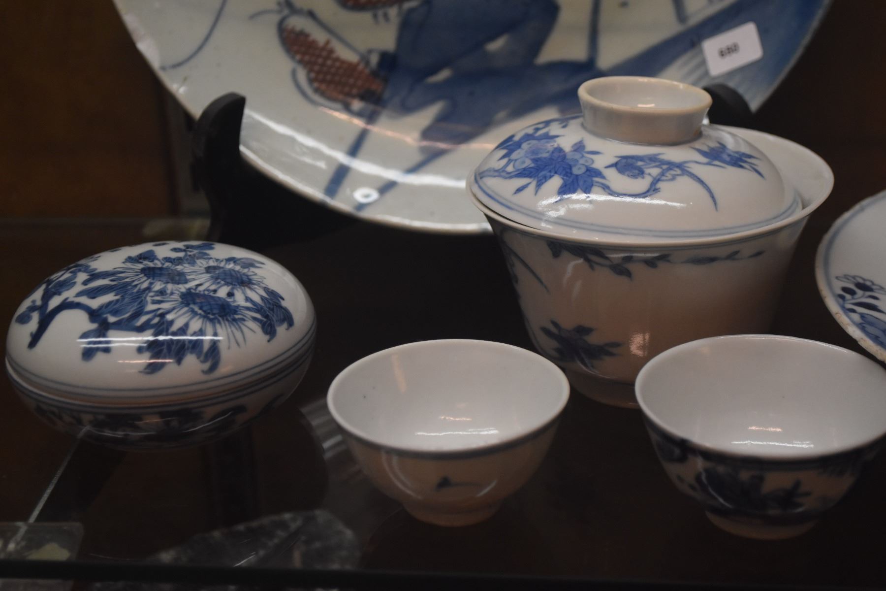 ASSORTED ANTIQUE & VINTAGE CHINESE PLATES, BOX, CUPS & BOWL (6 PCS) (DOES NOT INCLUDE STAND)
