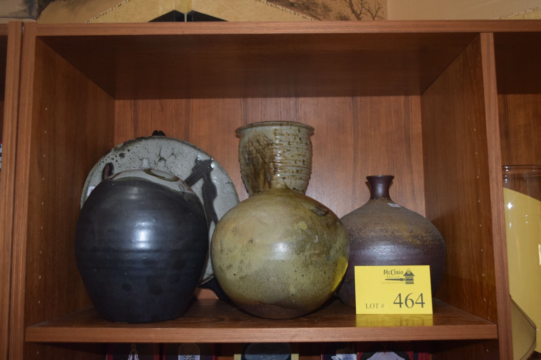 ASSORTED CERAMIC VASES & PLATE (5 PCS) (DOES NOT INCLUDE STAND)