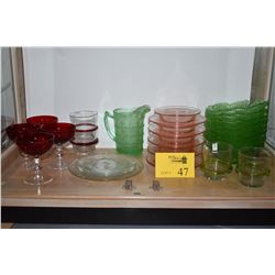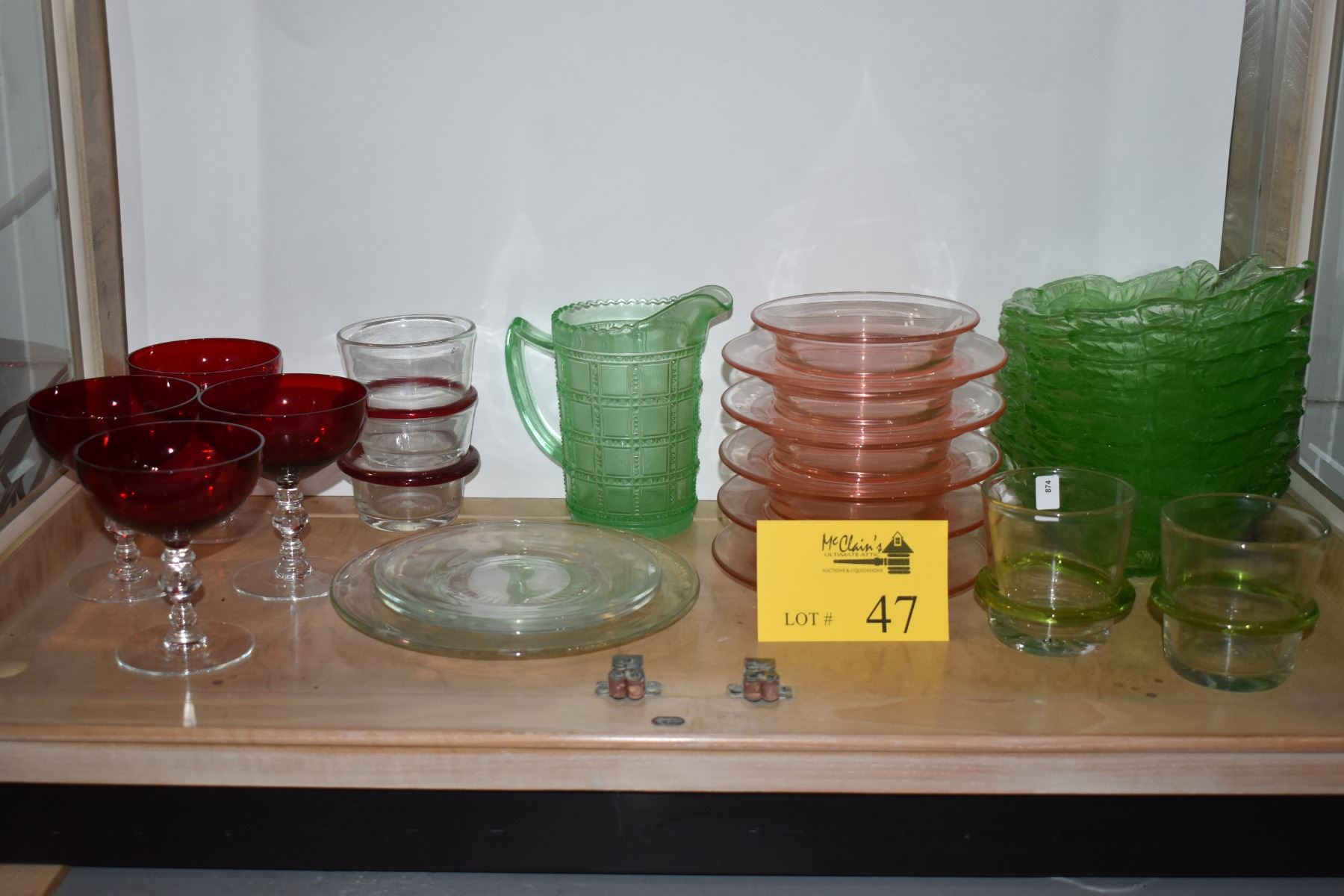 ASSORTED GLASS BOWLS, PLATES, PITCHER, GLASSES & STEMWARE (25 PCS)