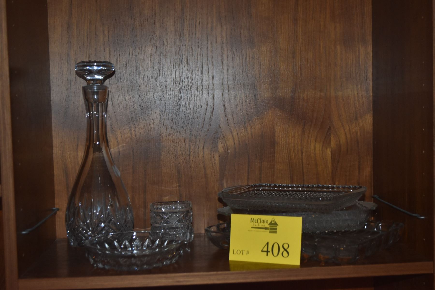ASSORTED PARTITIONED SERVING TRAYS, CRYSTAL DECANTER, BOWL & TOOTHPICK HOLDER (6 PCS)