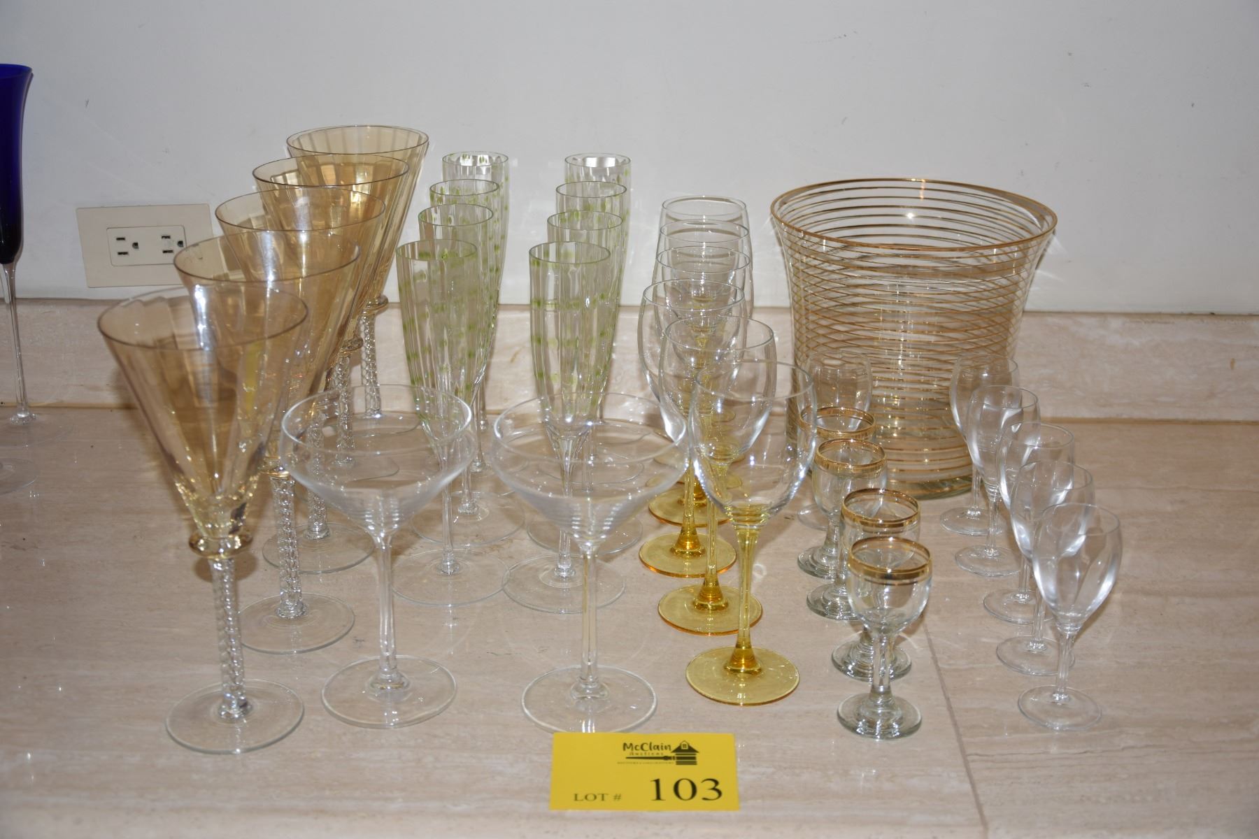 ASSORTED STEMMED GLASSES & WINE BUCKET (32 PCS)