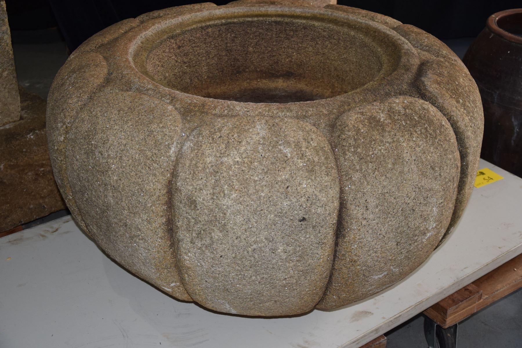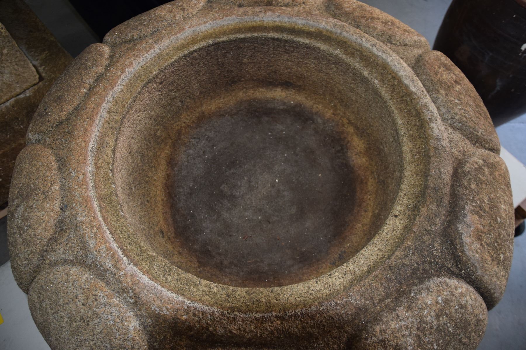 AUTHENTIC KIKU, JAPANESE CHOZUBACHI TSUKUBAI (USED IN TRADITIONAL TEA CEREMONY) SHIRAKAWA STONE FROM NAGOYA, AICHI PREFECTURE, MEJI PERIOD (3' D X 20" H)