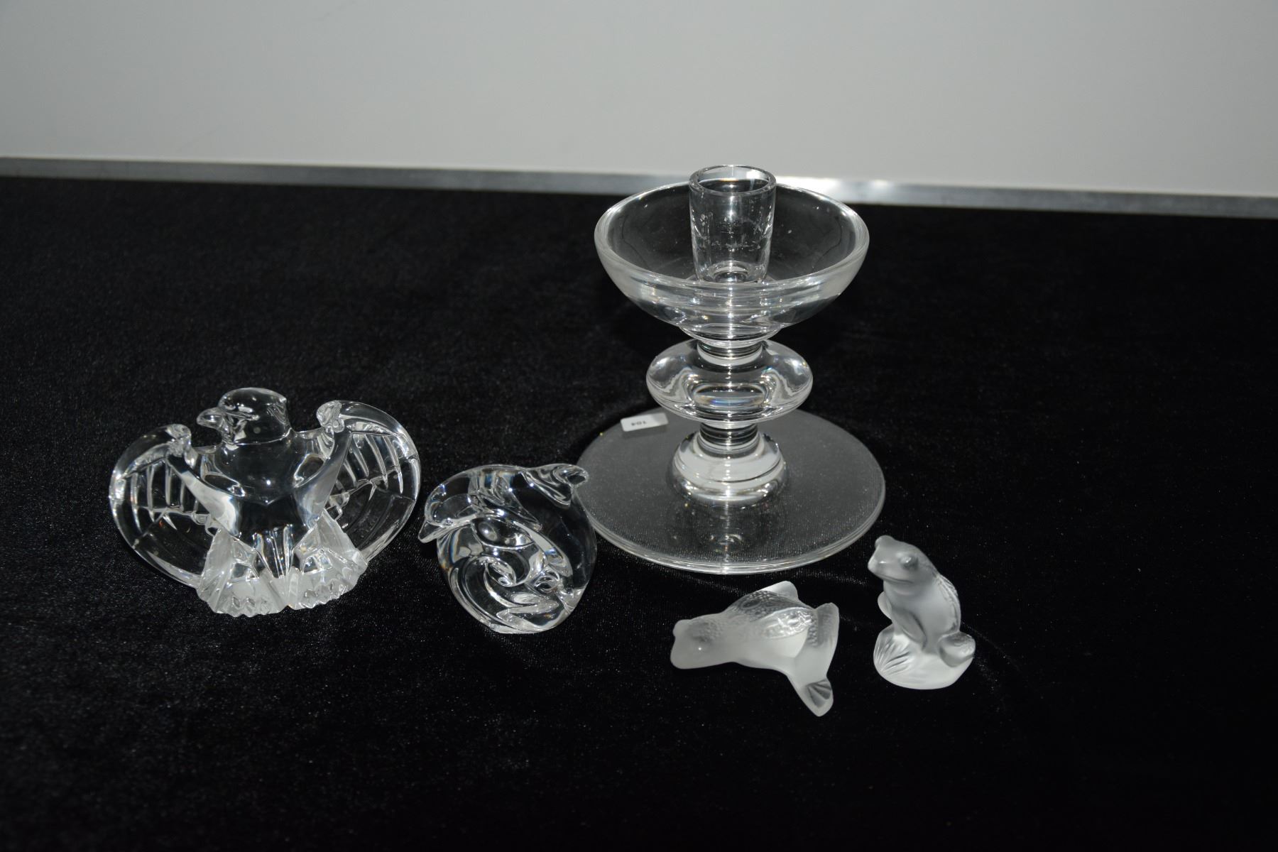 BACCARAT EAGLE & DOLPHIN, LALIQUE FROGS & VAL ST. LAMBERT CRYSTAL CANDLE HOLDER (5 PCS) (DOES NOT IN