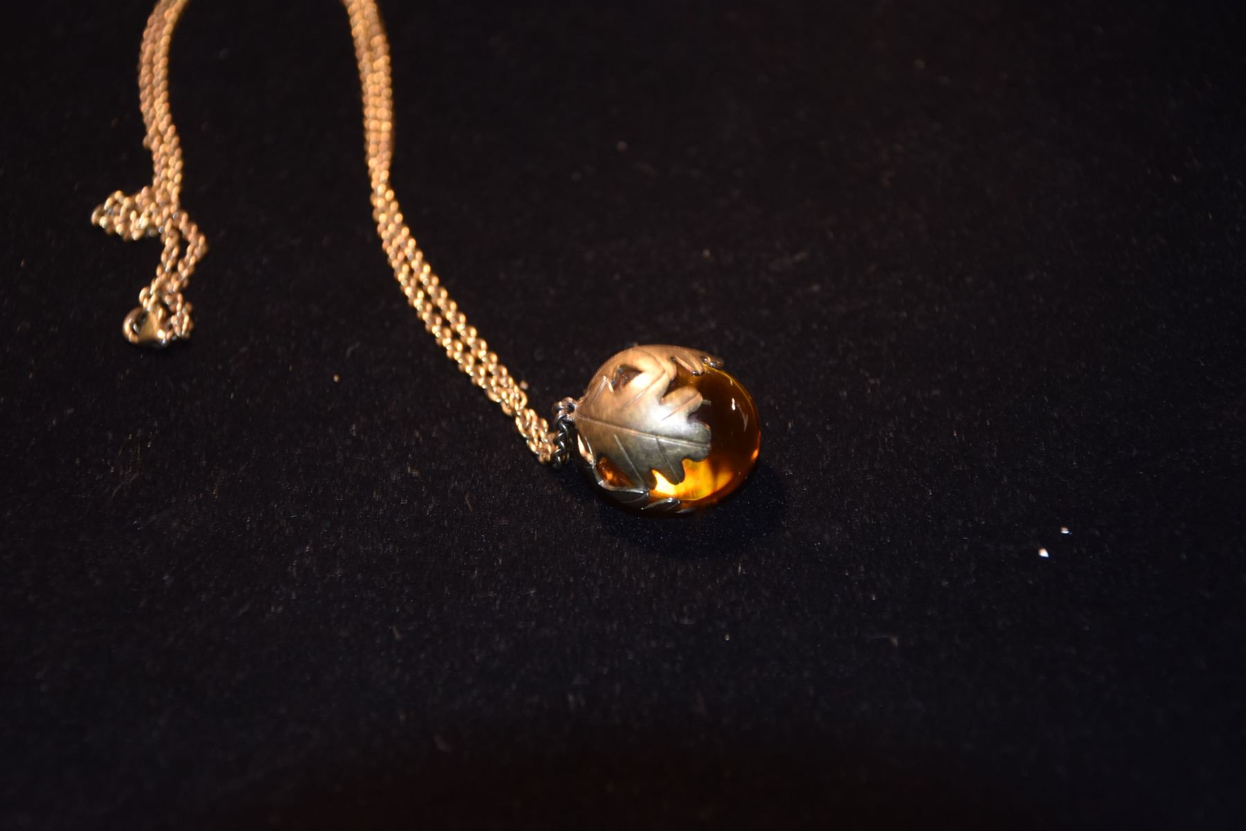 BACCARAT STERLING SILVER & VERMIEL RING & PENDANT W/CHAIN, ACORN DESIGN (2 PCS)