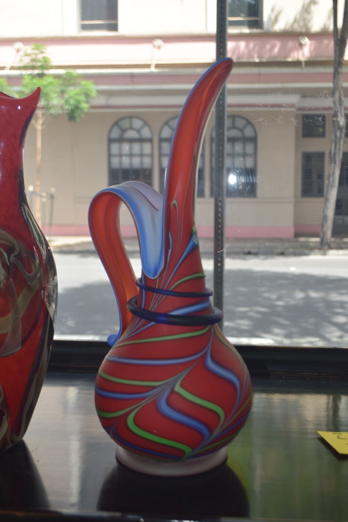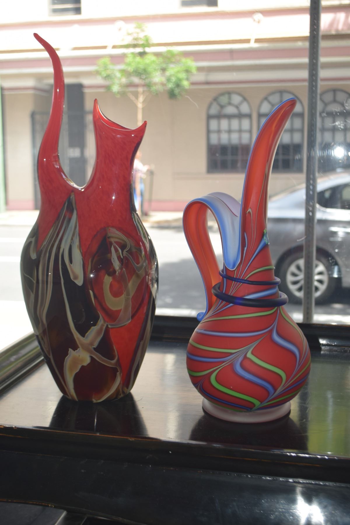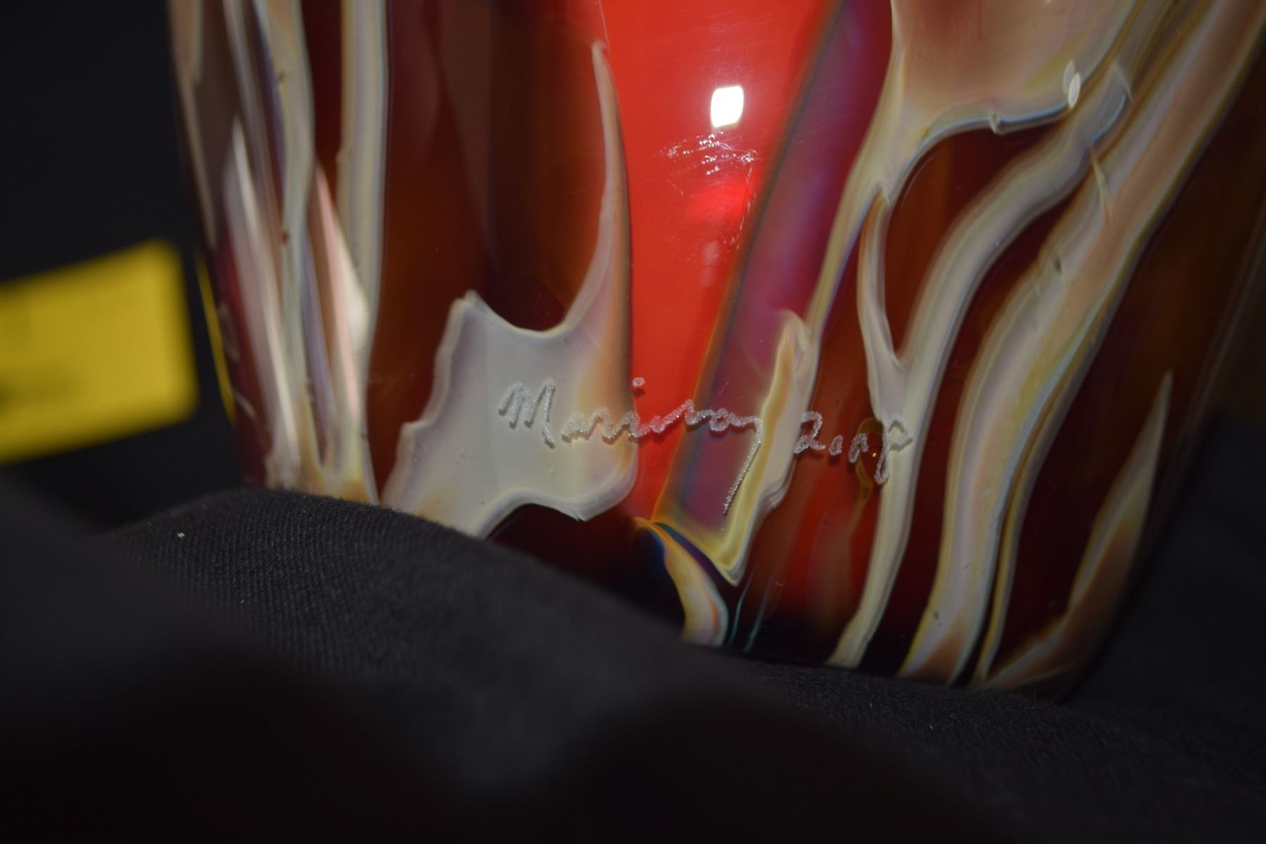BAIJAN ART GLASS VASE BY RUSSIAN ARTIST E. ZAREH & HANDBLOWN GLASS CAT VASE (2 PCS)