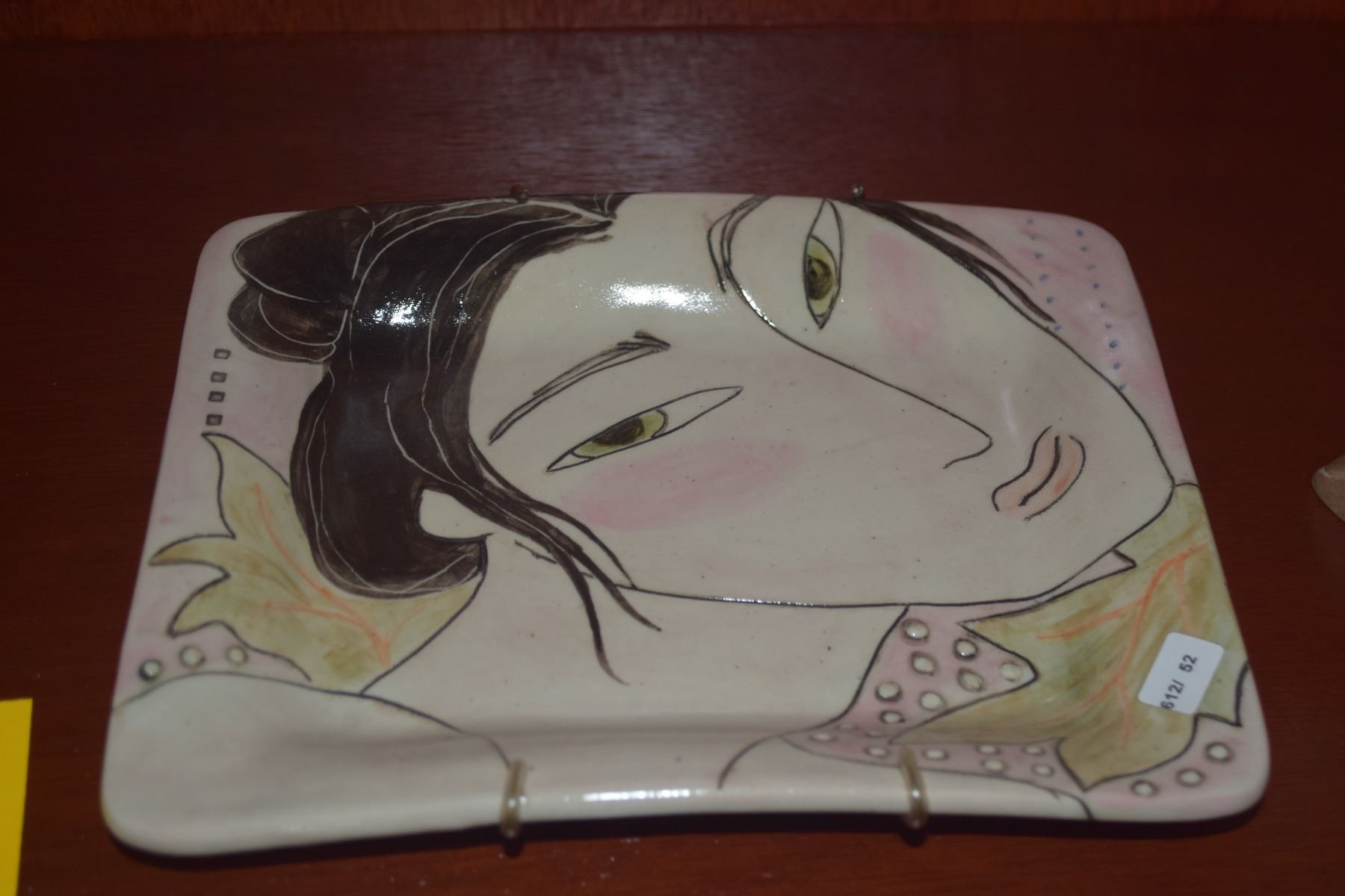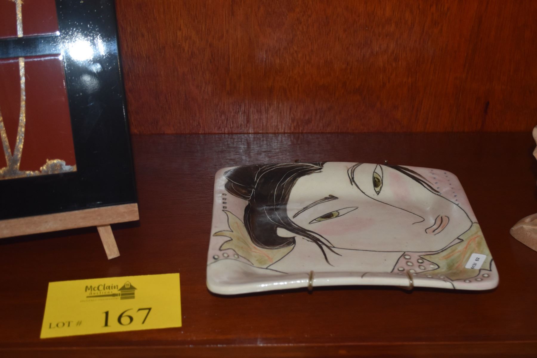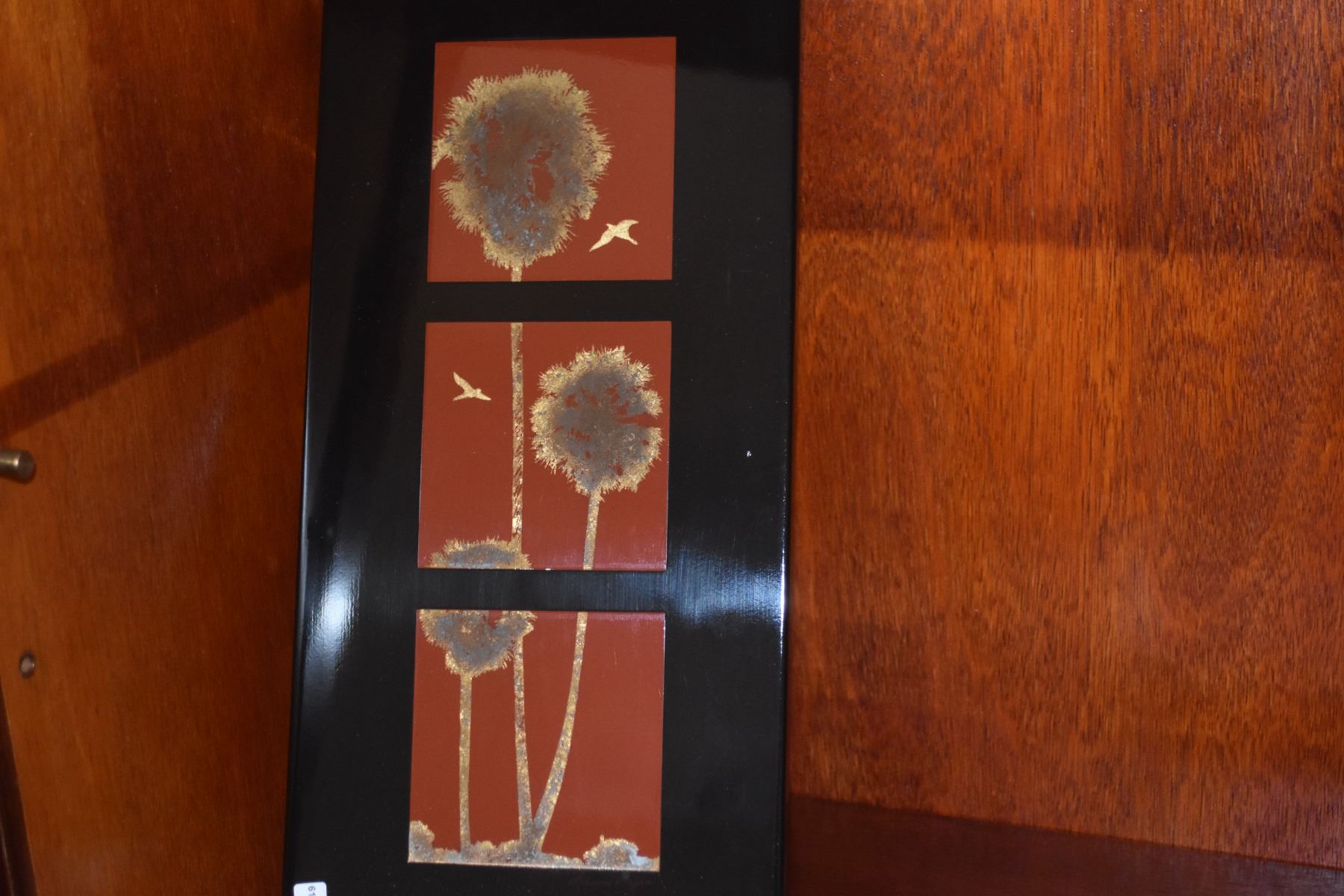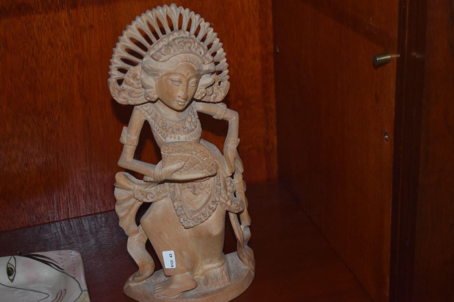 BALINESE CARVED WOOD GODDESS, JAPANESE THEMED HANGING PLATE & CHINESE LACQUER PANEL W/STAND (3 PCS)