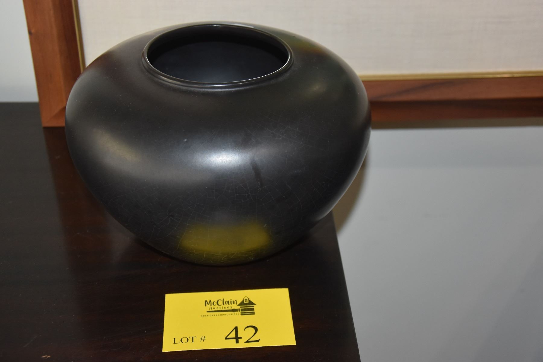 BAUER VASE W/BLACK CRACKLE GLAZE