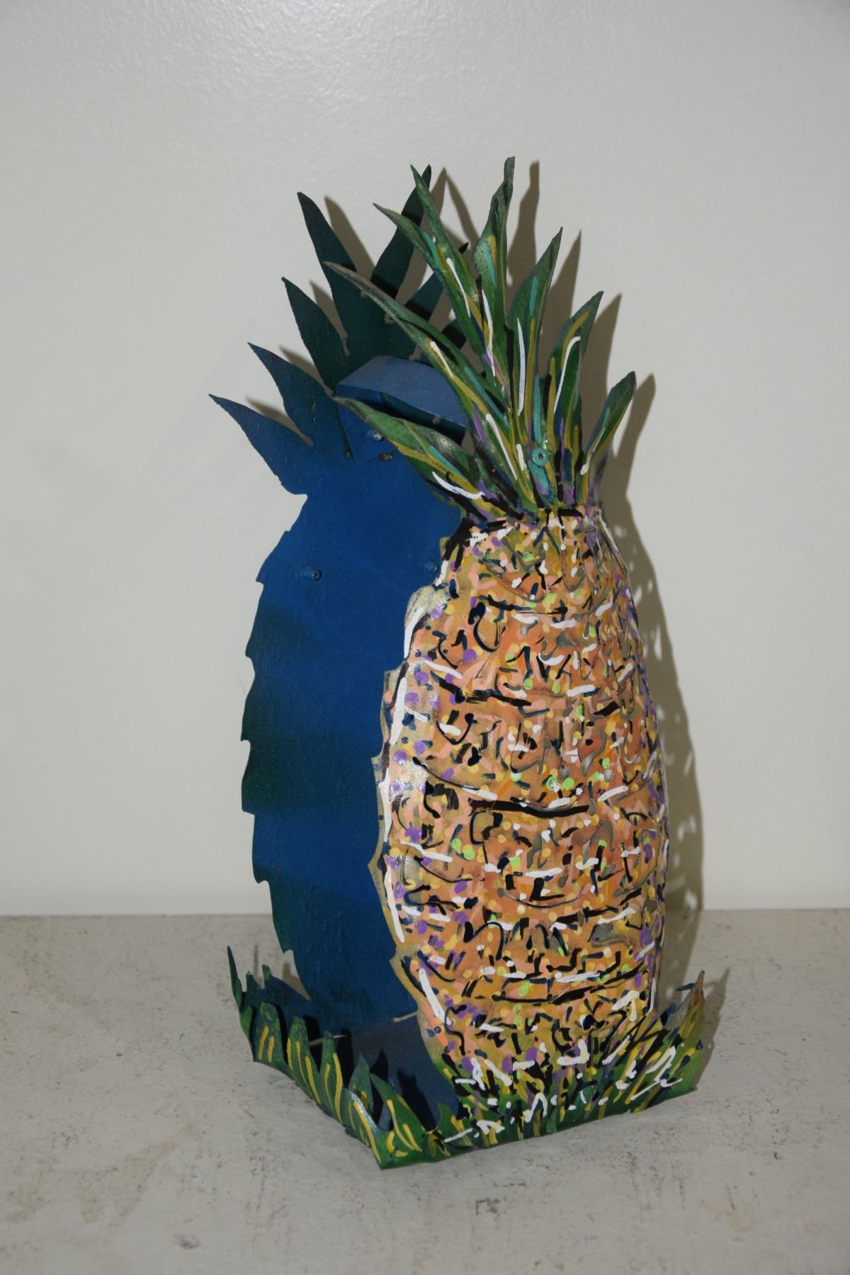 BERNIE MORIAZ METAL & ACRYLIC PINEAPPLE SCULPTURE; SIGNED (14" X 5.5")