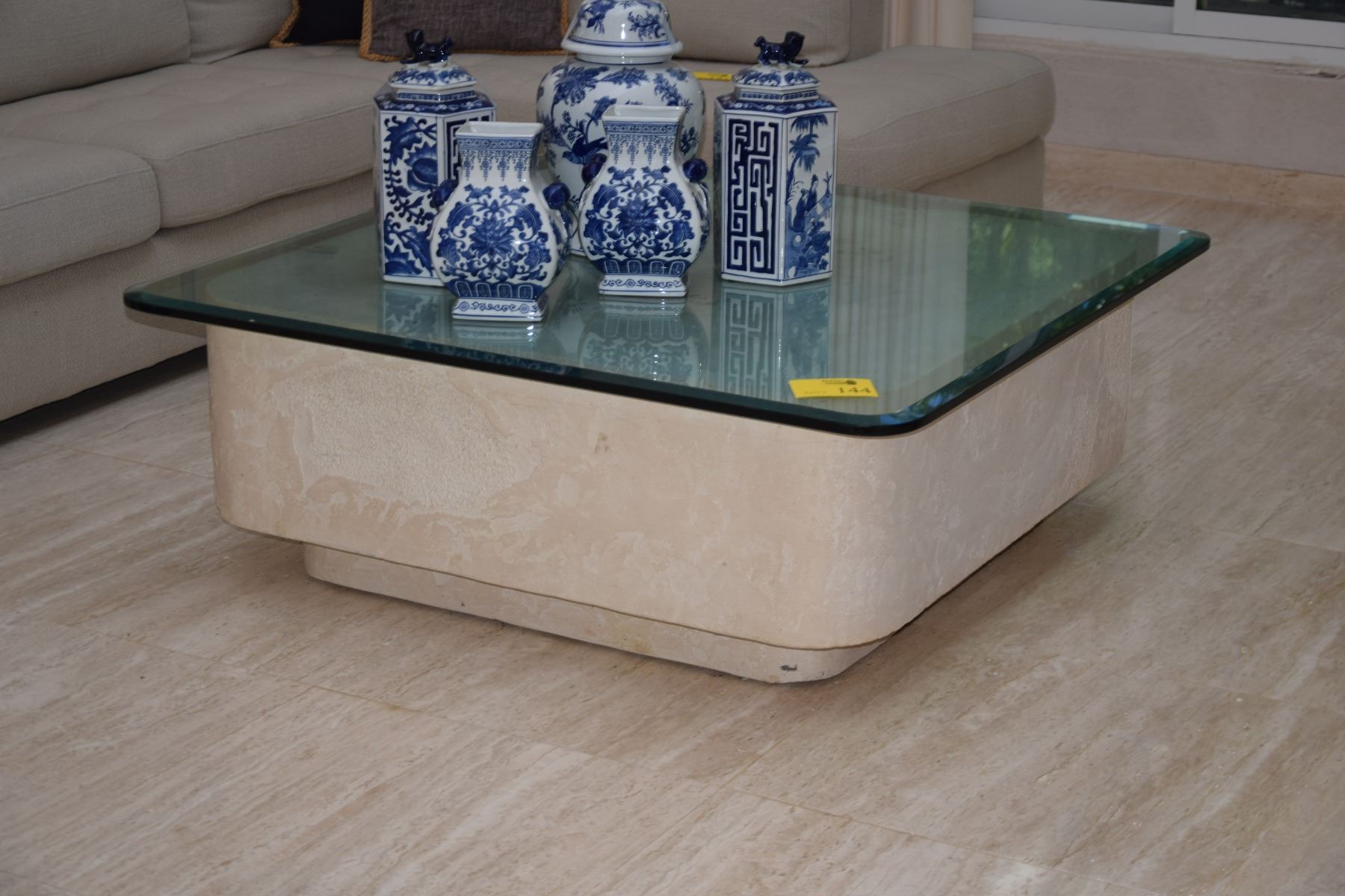 BEVELED GLASS TOP COFFEE TABLE (48" X 48" & 42" X 42" X 17 1/2" H))