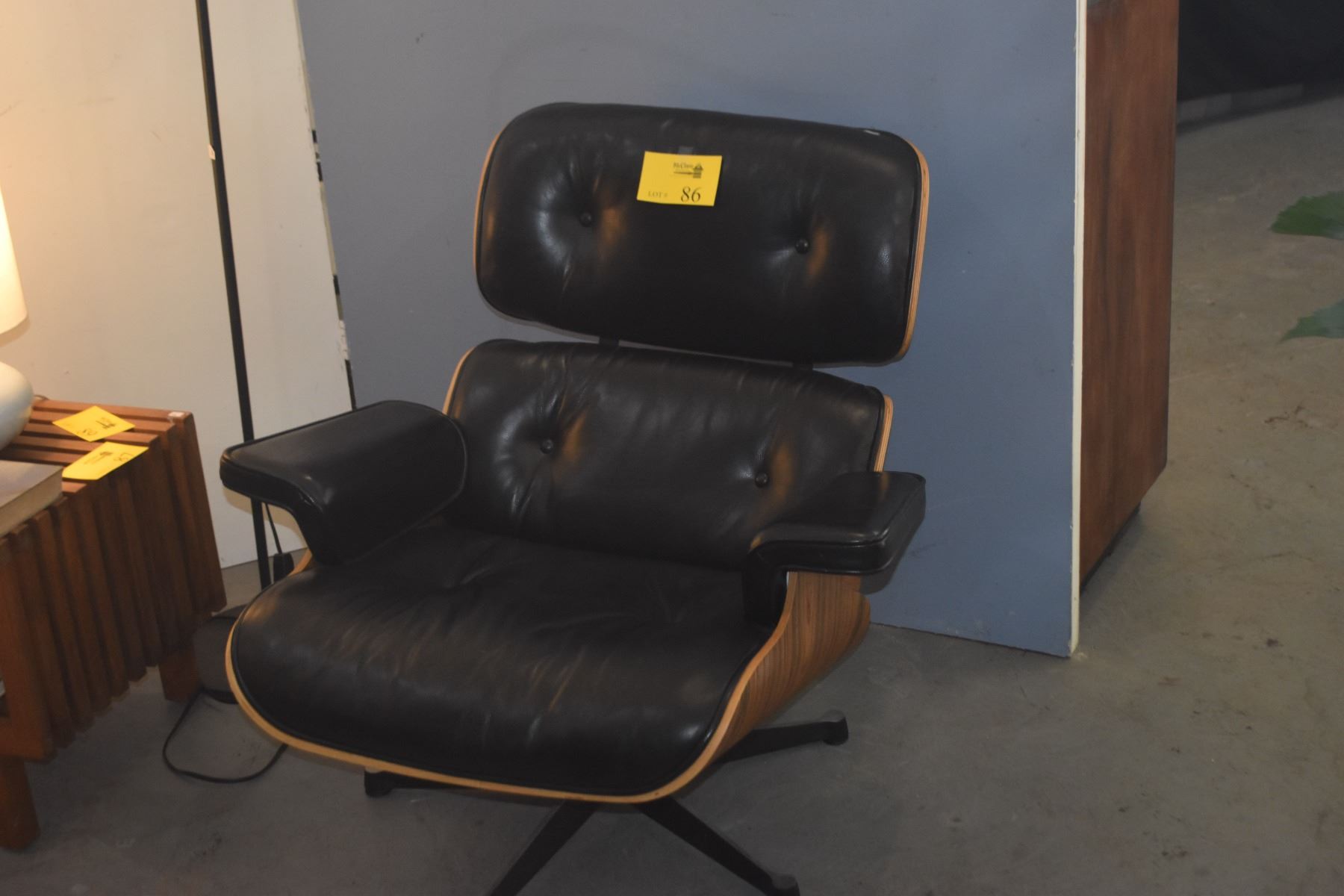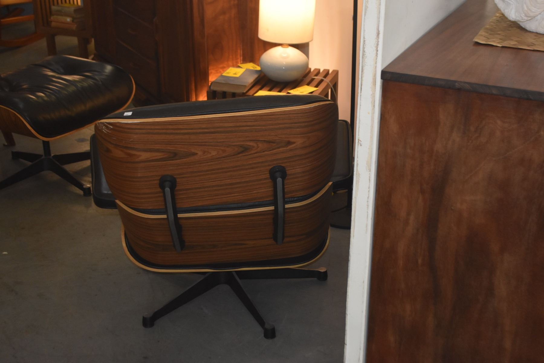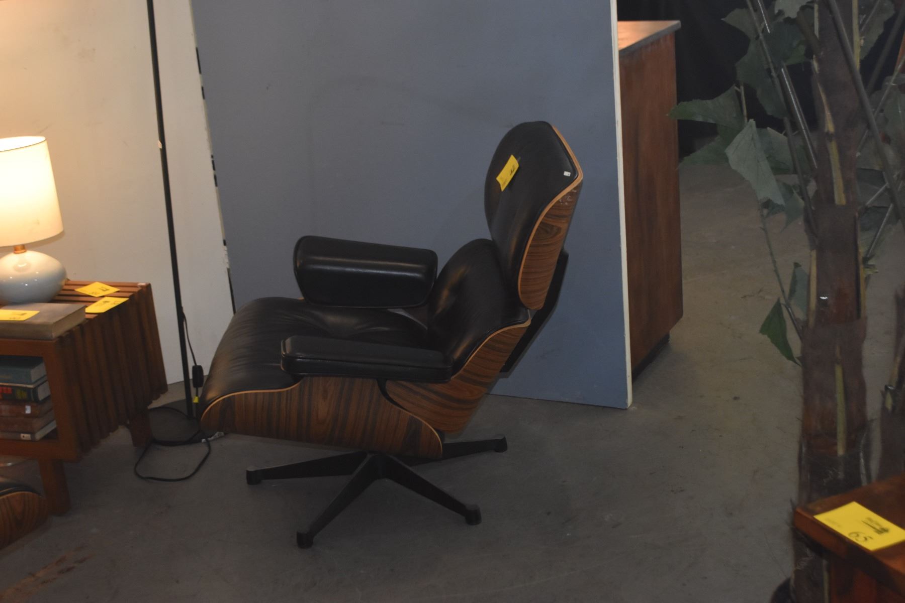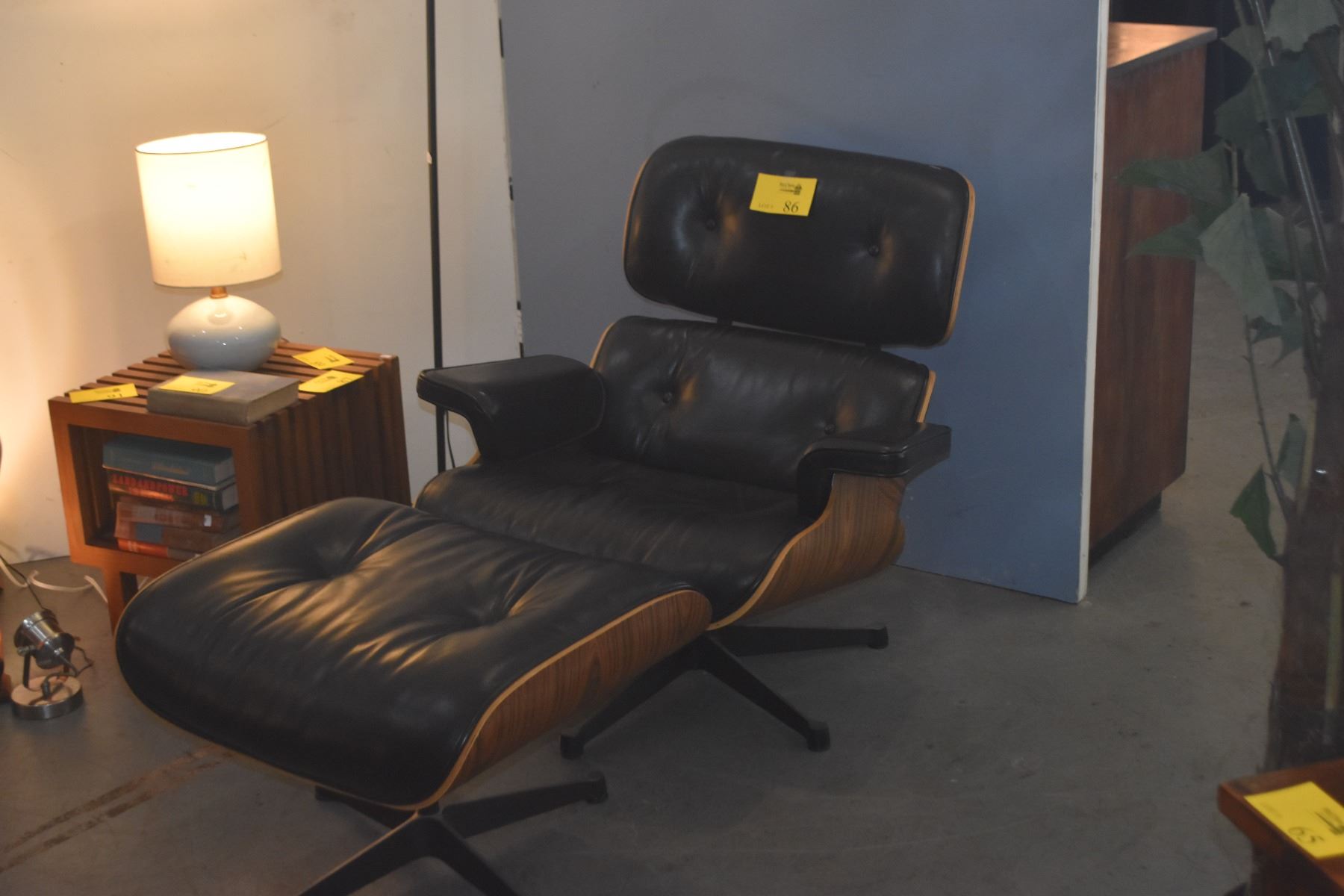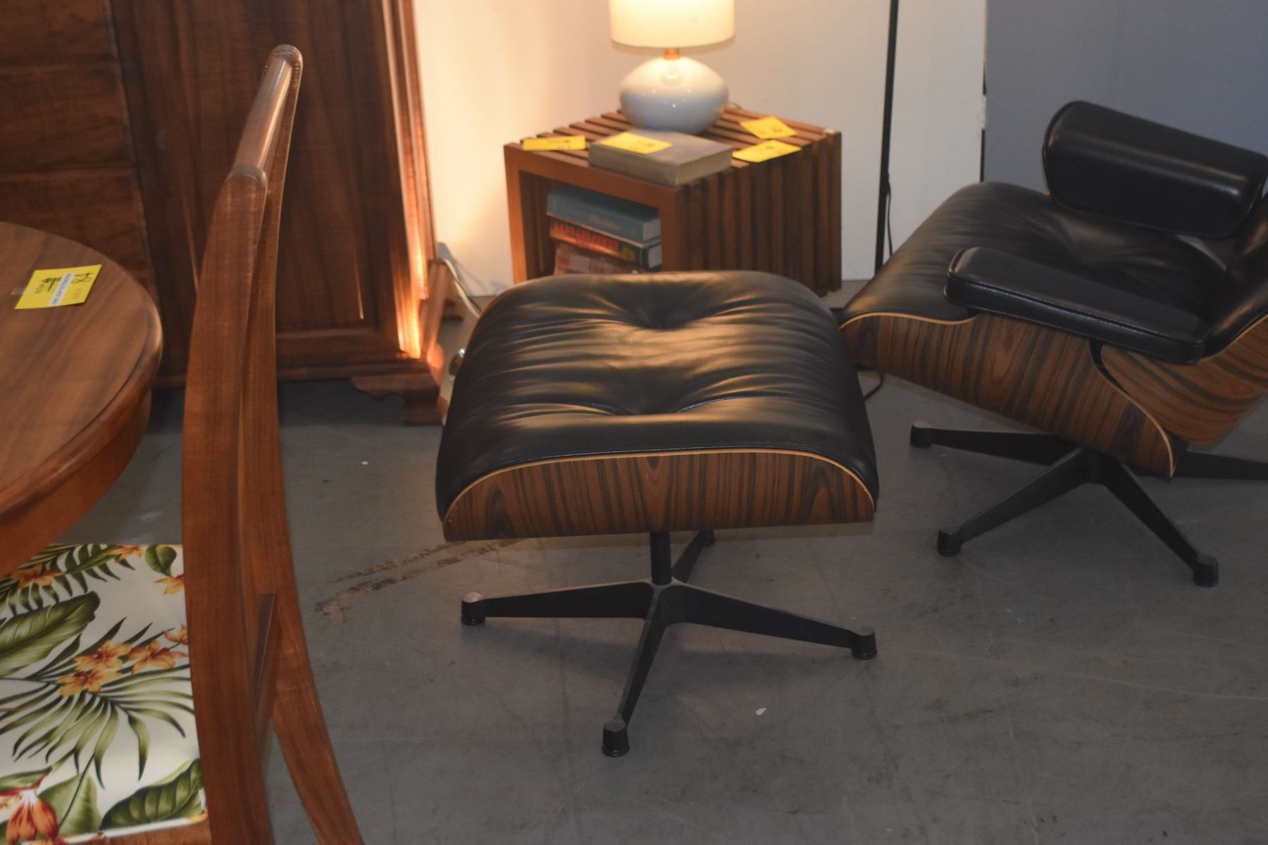 BLACK EAMES STYLE CHAIR W/OTTOMAN