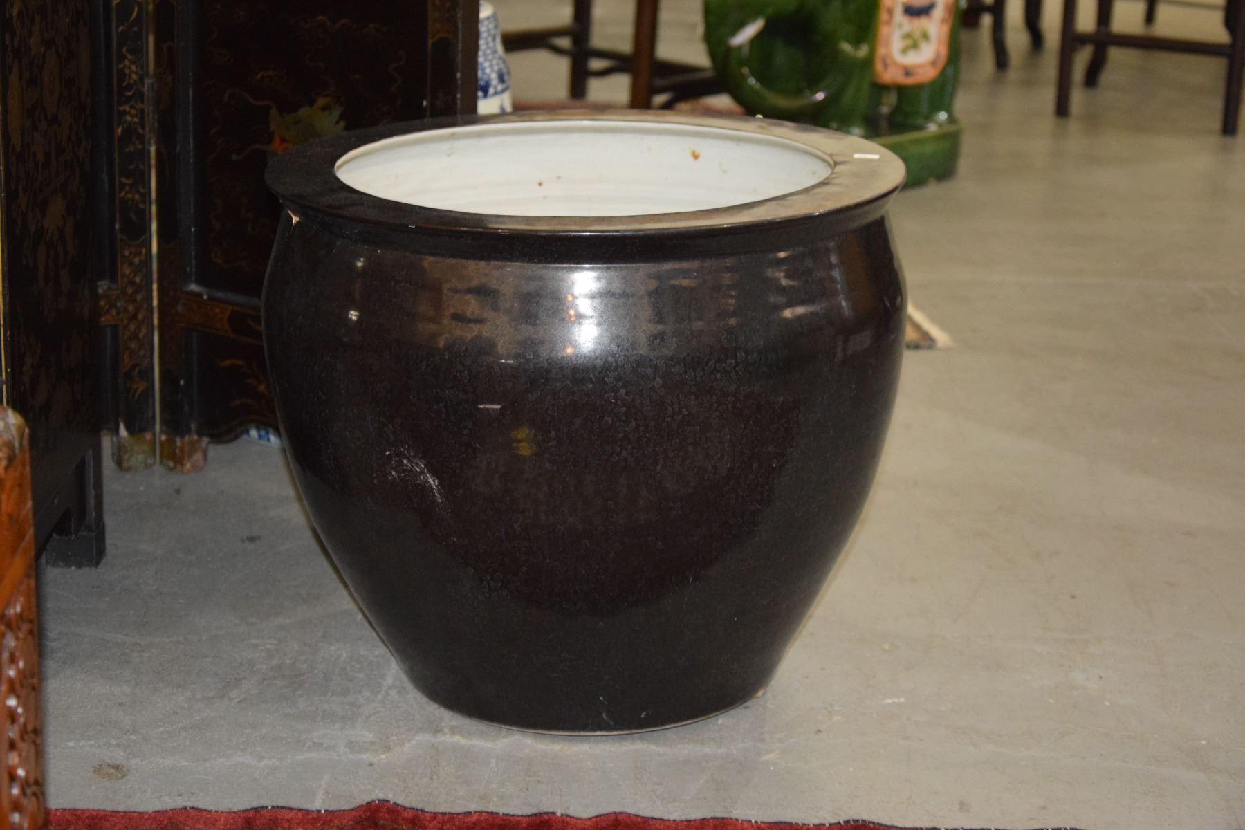 BLACK PORCELAIN PLANTERS (19" D) (PAIR)