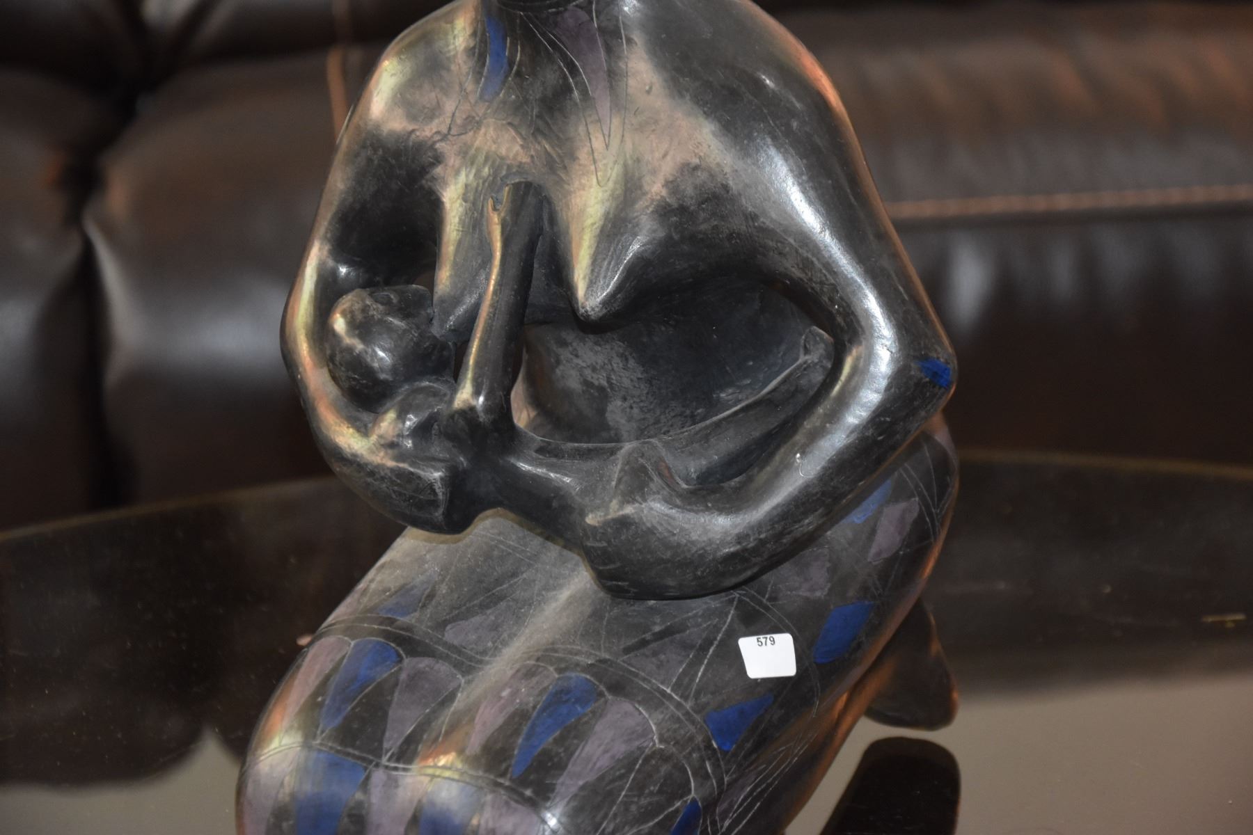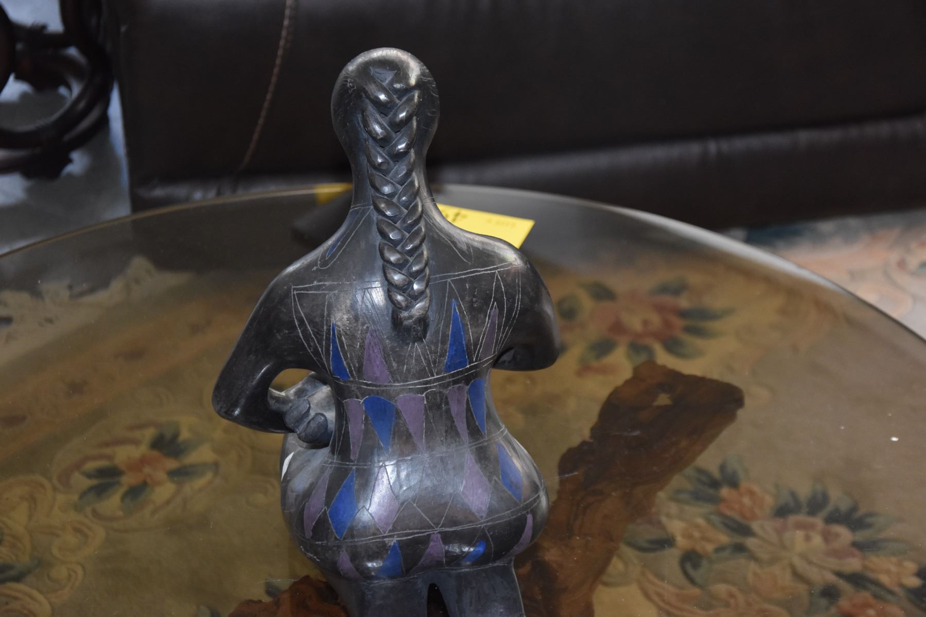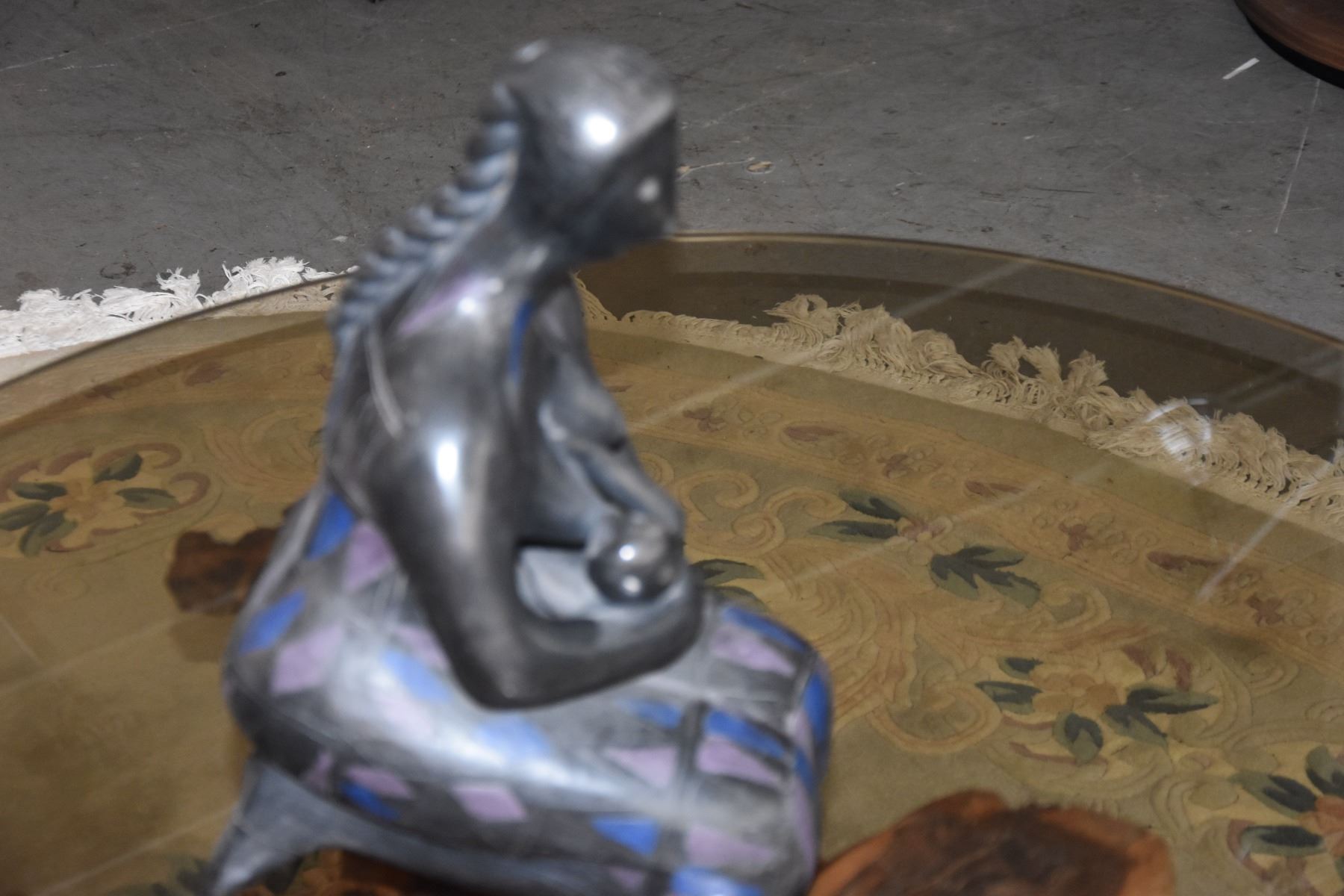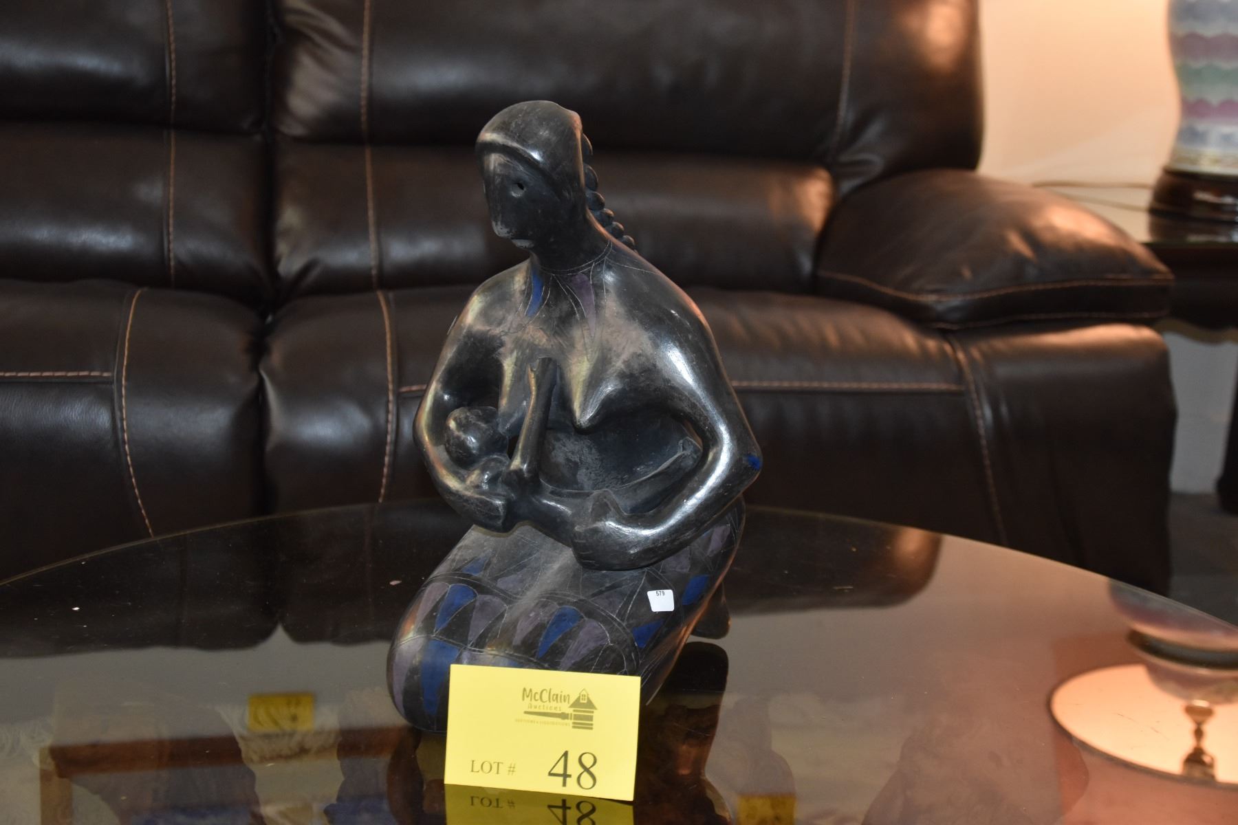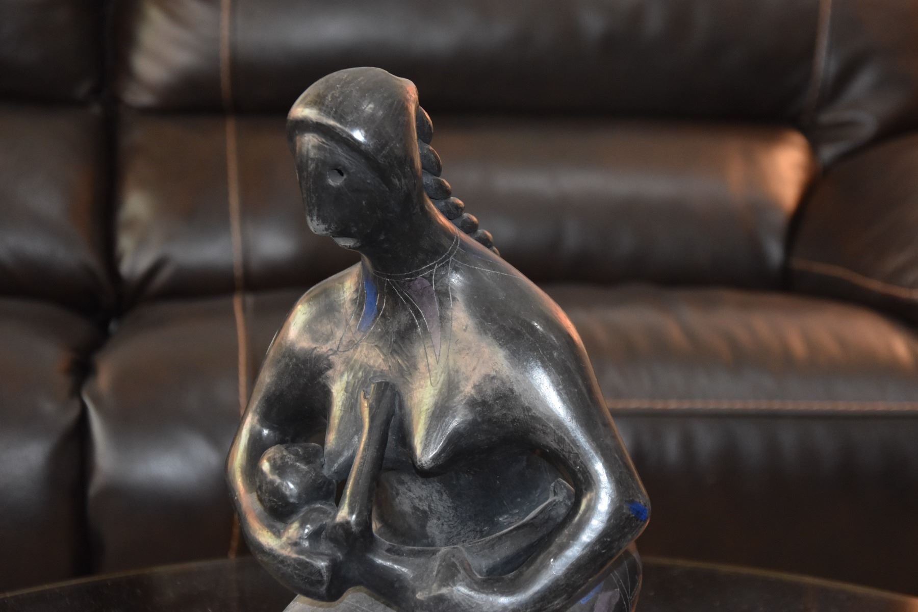 BLACK POTTERY MOTHER & CHILD SCULPTURE; SIGNED FELGUEREZ (MANUAL)
