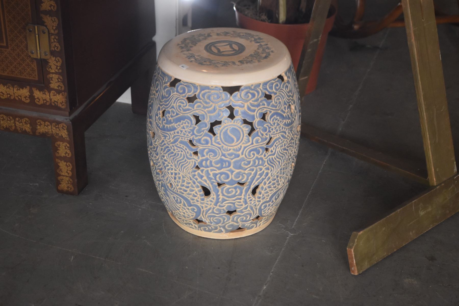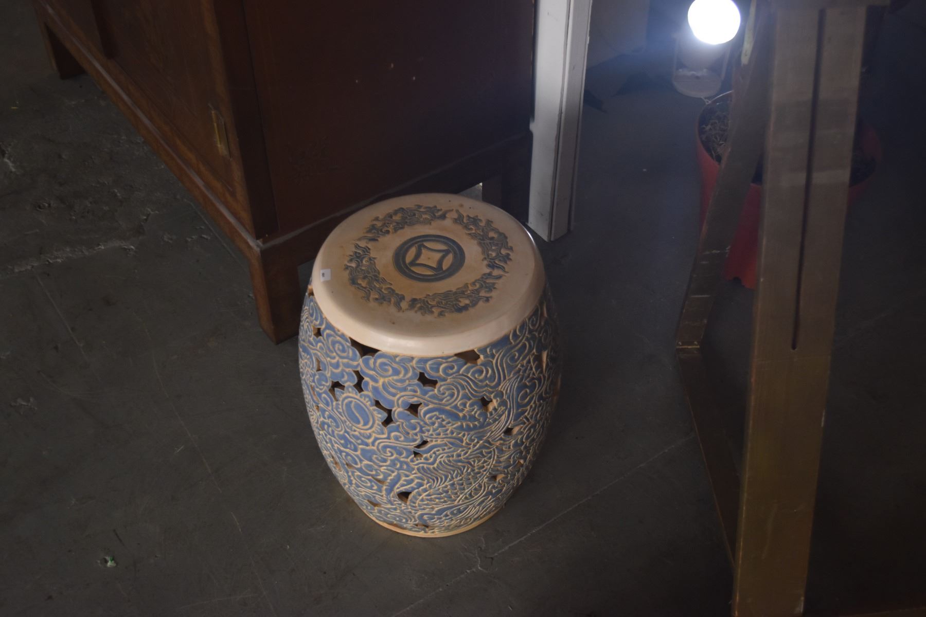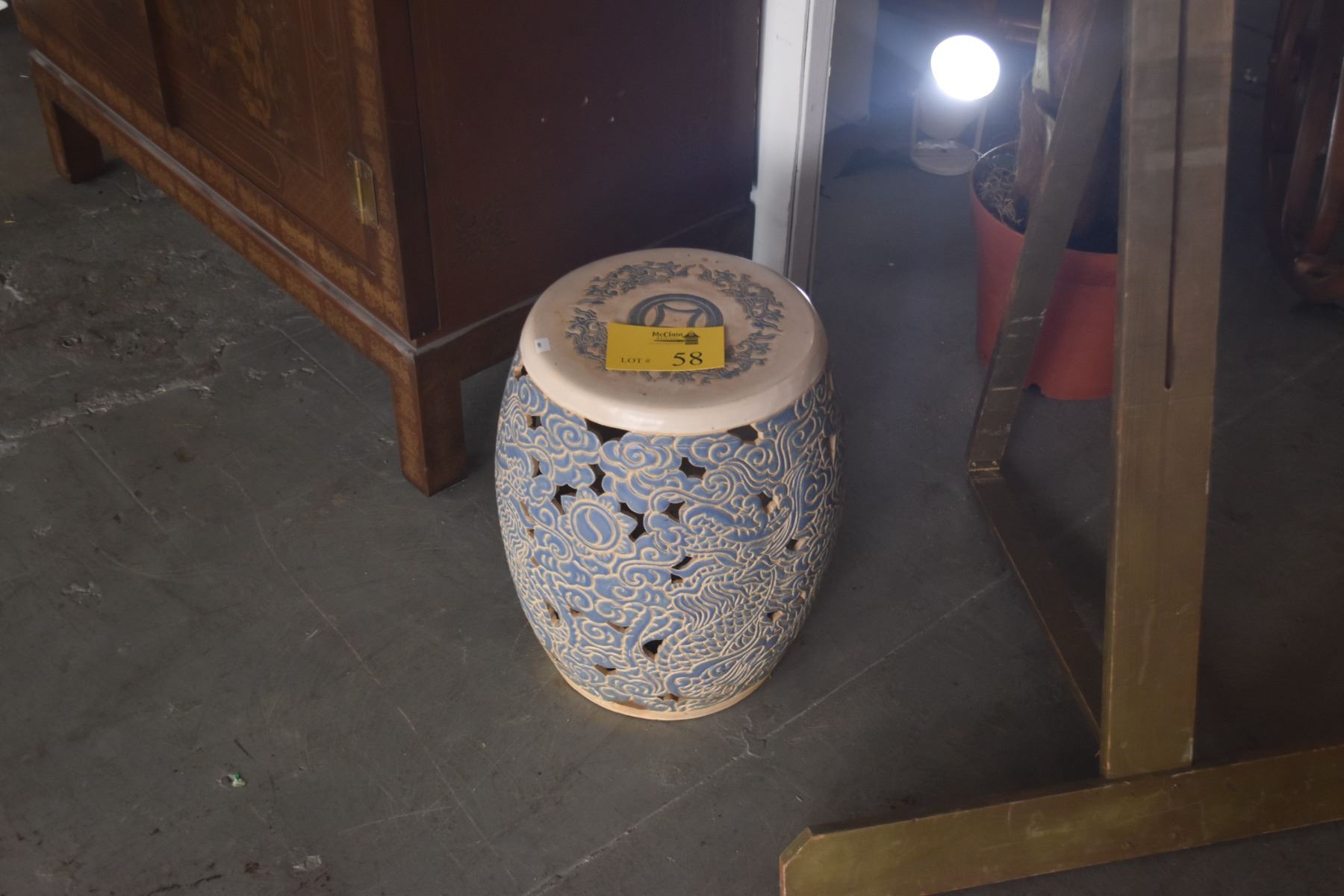 BLUE & WHITE CERAMIC GARDEN STOOL