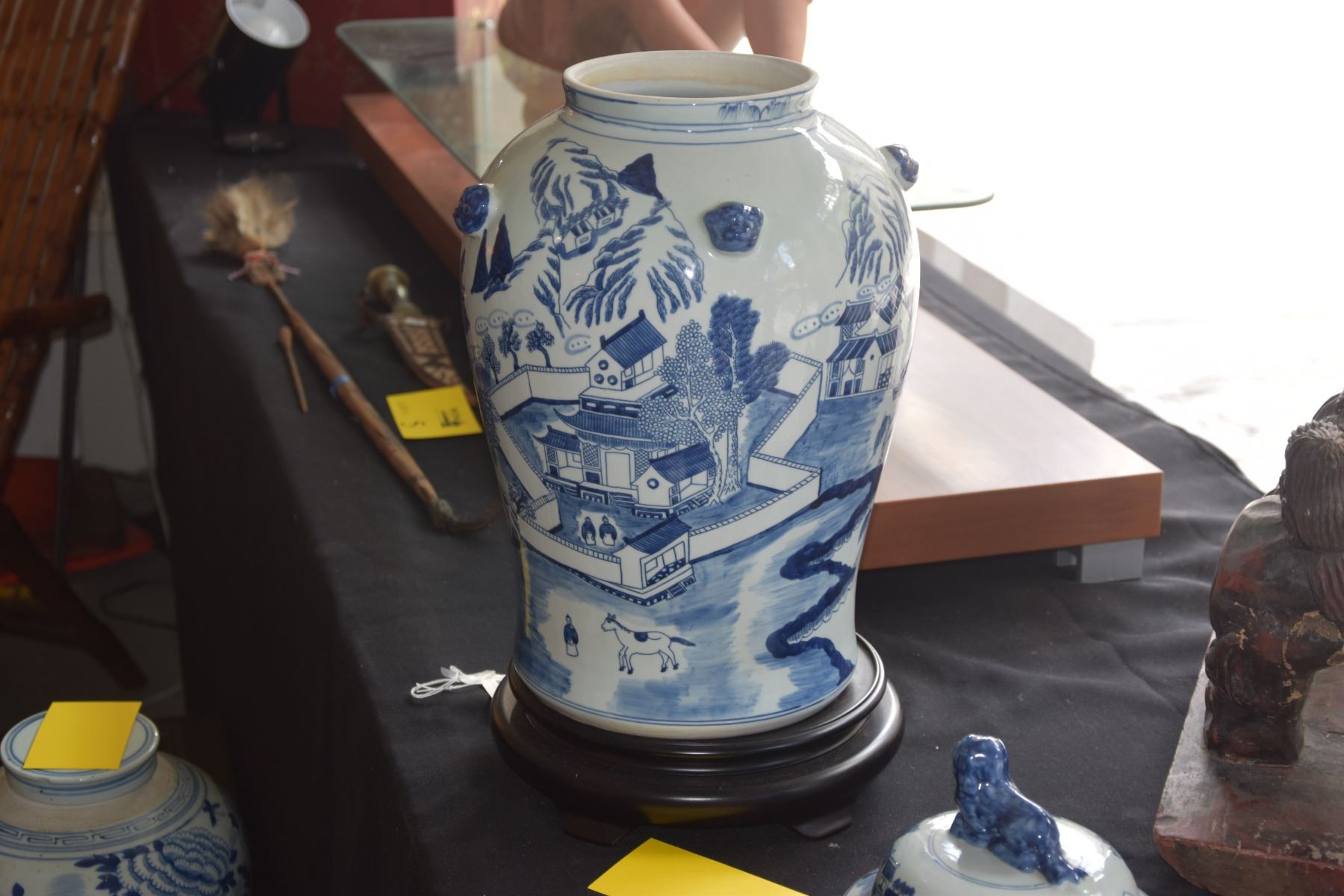 BLUE & WHITE PORCELAIN TEMPLE JAR (22")