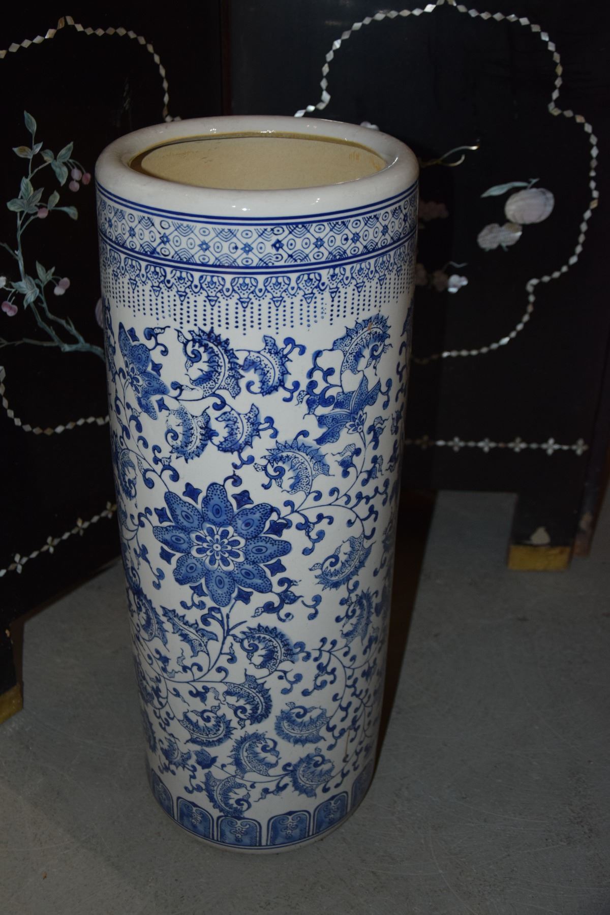 BLUE & WHITE PORCELAIN UMBRELLA STAND