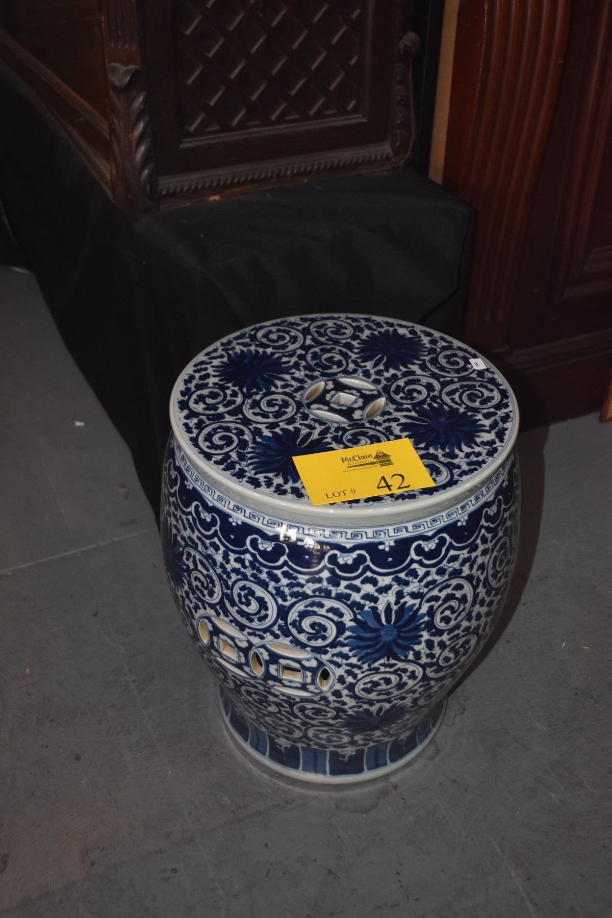 BLUE & WHITE TWISTED LOTUS DRUM STOOL