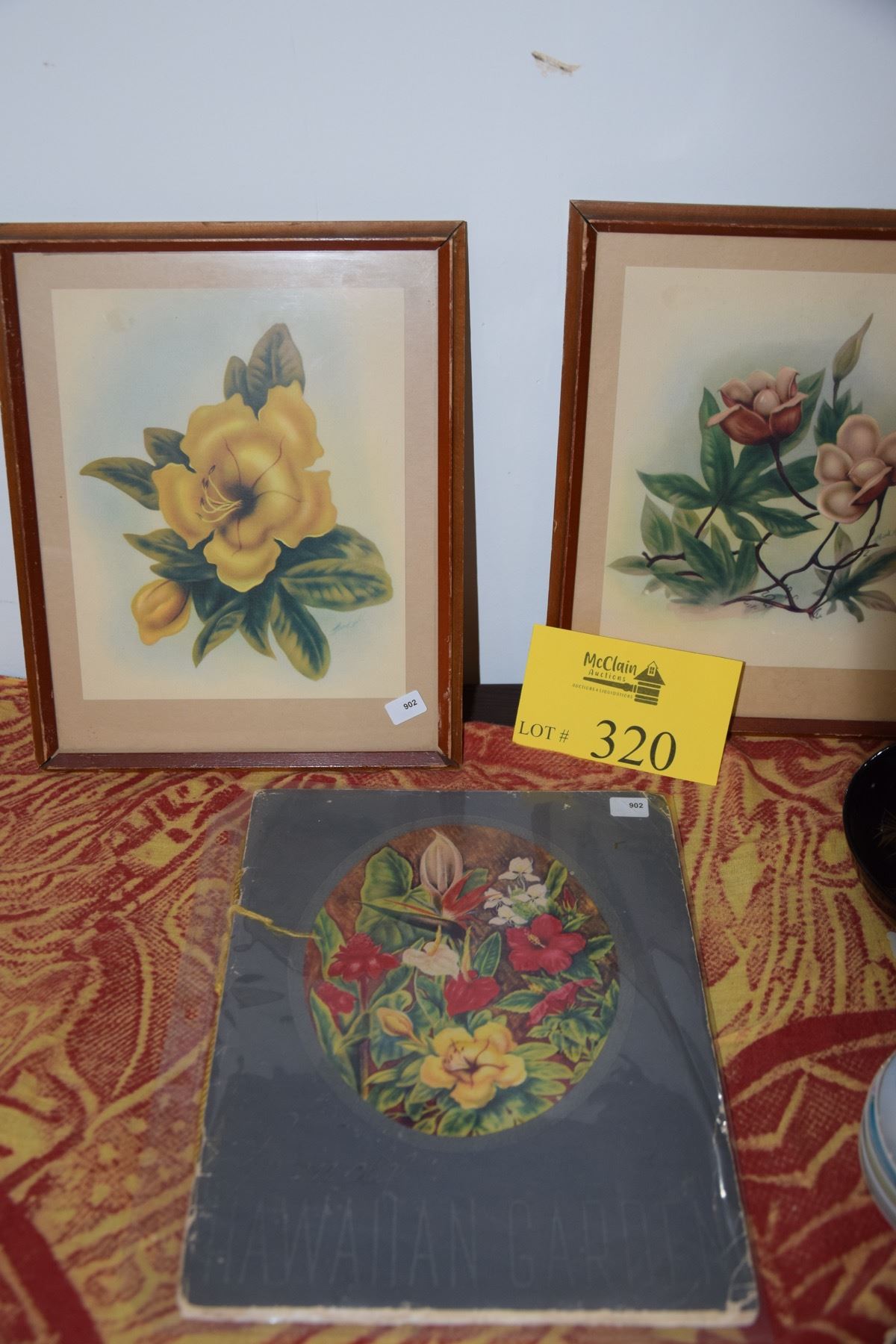 BOOK: IN AN OLD HAWAIIAN GARDEN, CA. 1943 & FRAMED MUNDORFF PRINTS (8 1/2" X 10 1/2" FRAMED) (3 PCS)