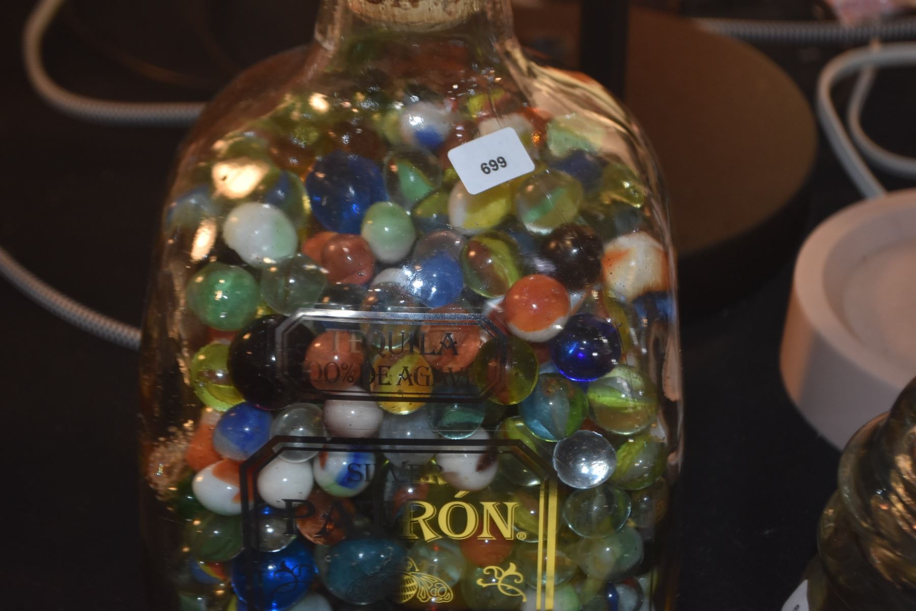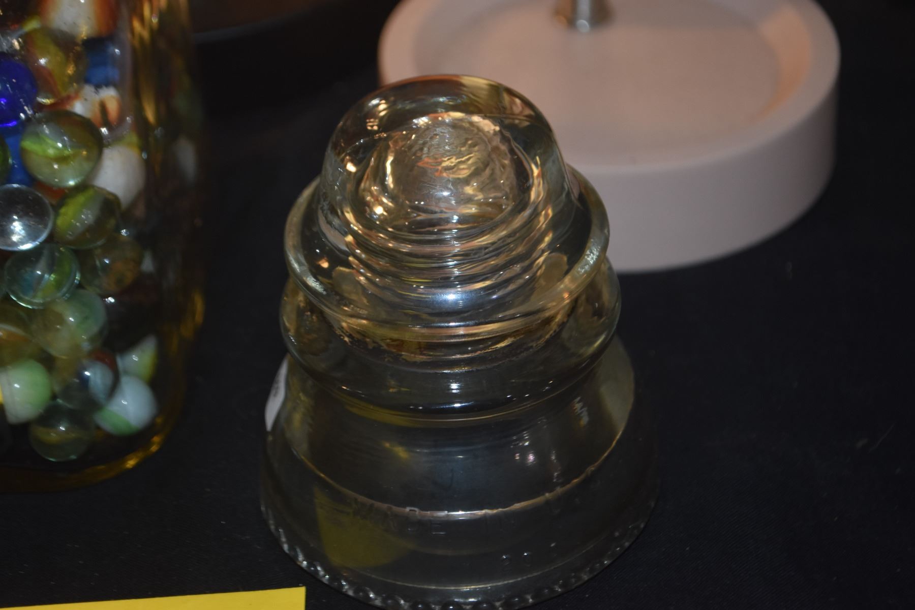 BOTTLE OF MARBLES & GLASS INSULATOR