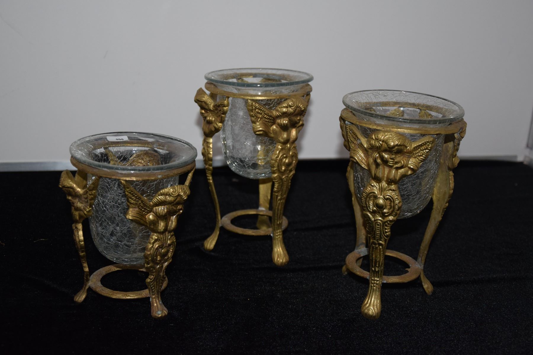BRASS ANGEL STANDS W/GLASS VOTIVE HOLDERS (3 PCS)