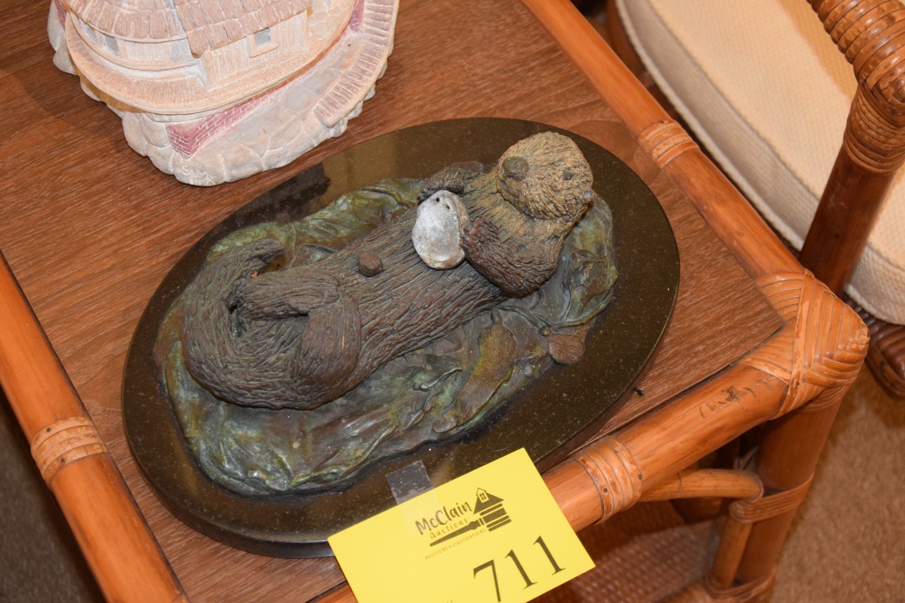 BRONZE SEA OTTER ON MARBLE BASE; SIGNED WYLAND (12" X 8 1/4")