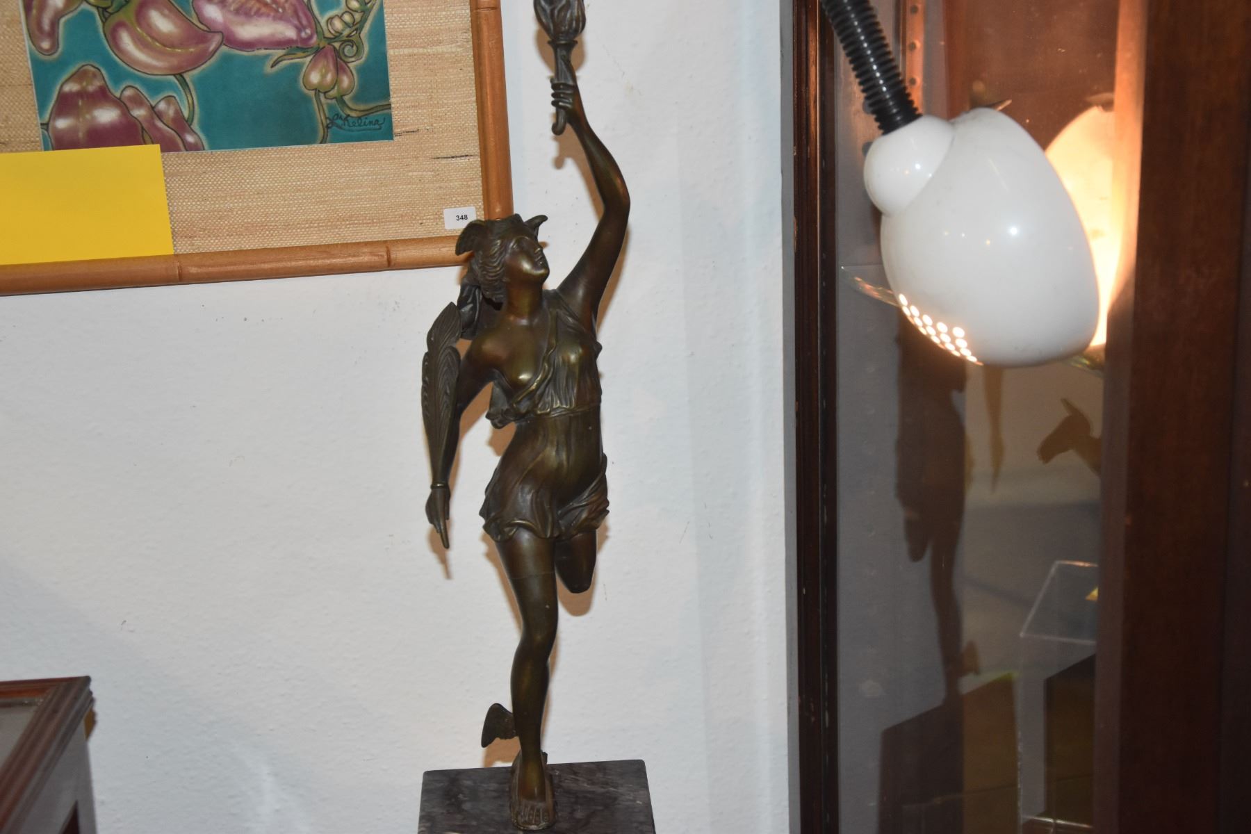 BRONZE STATUE ON MARBLE BASE, MERCURY (24" X 5")