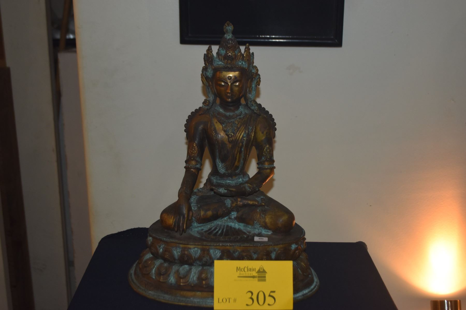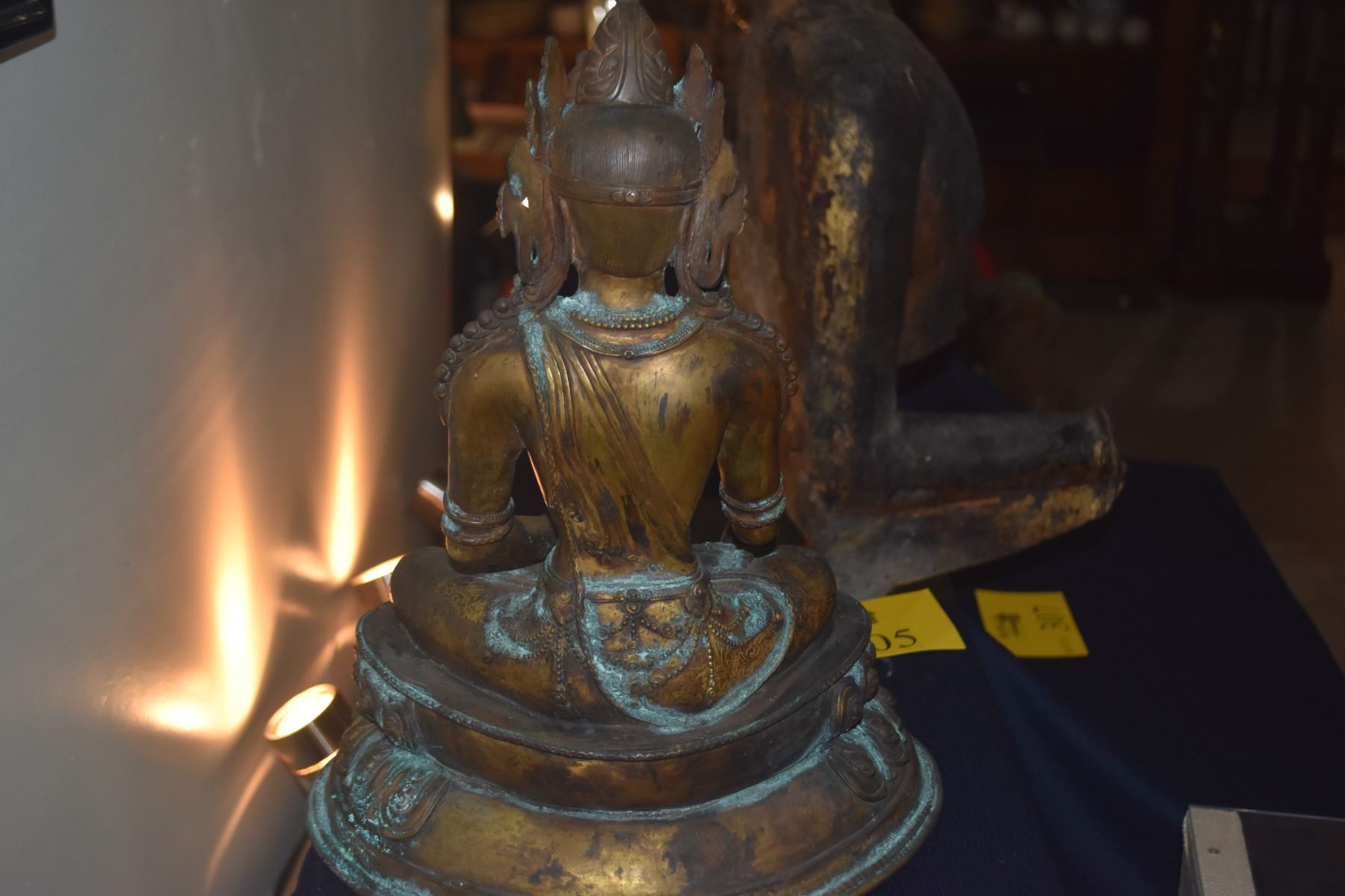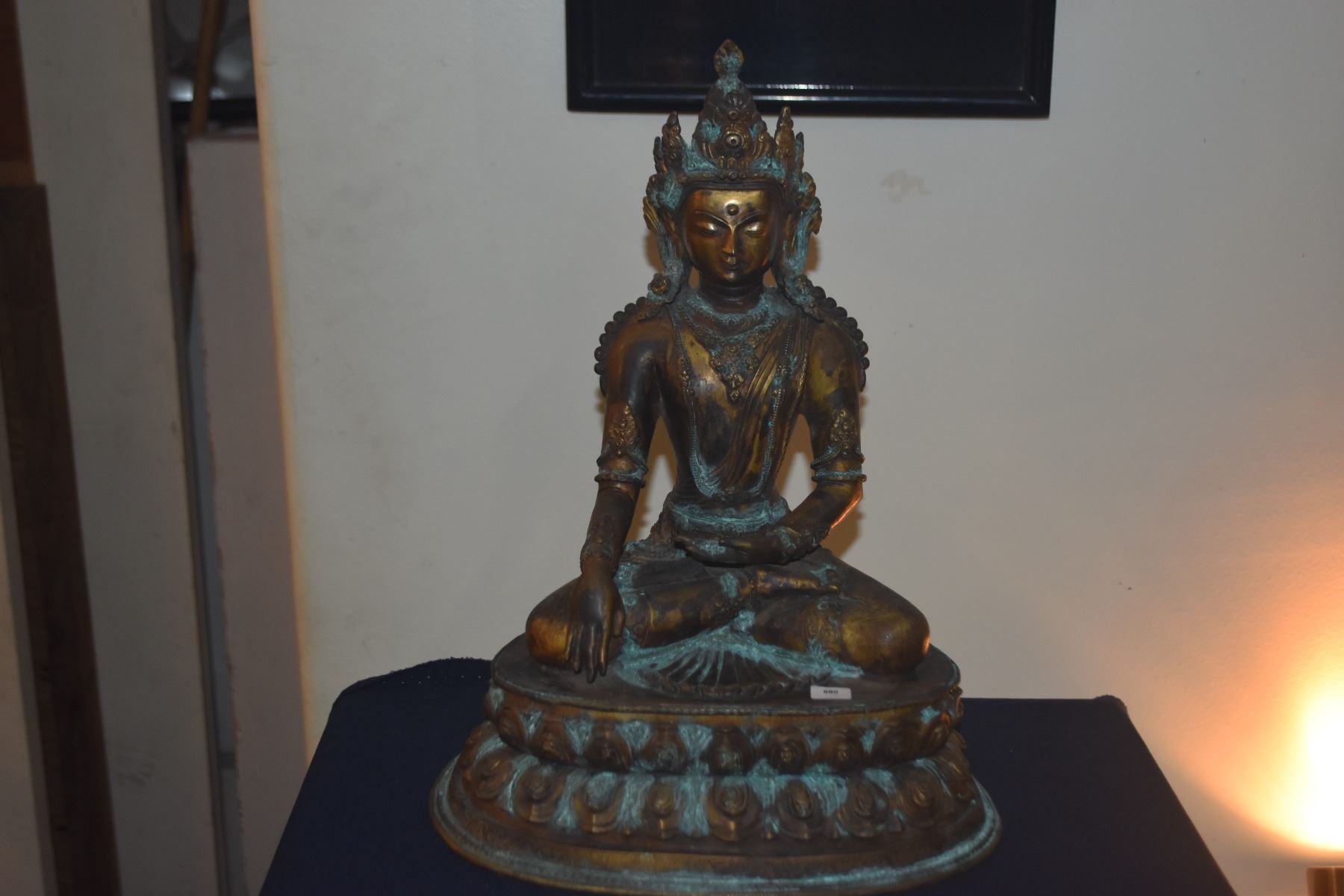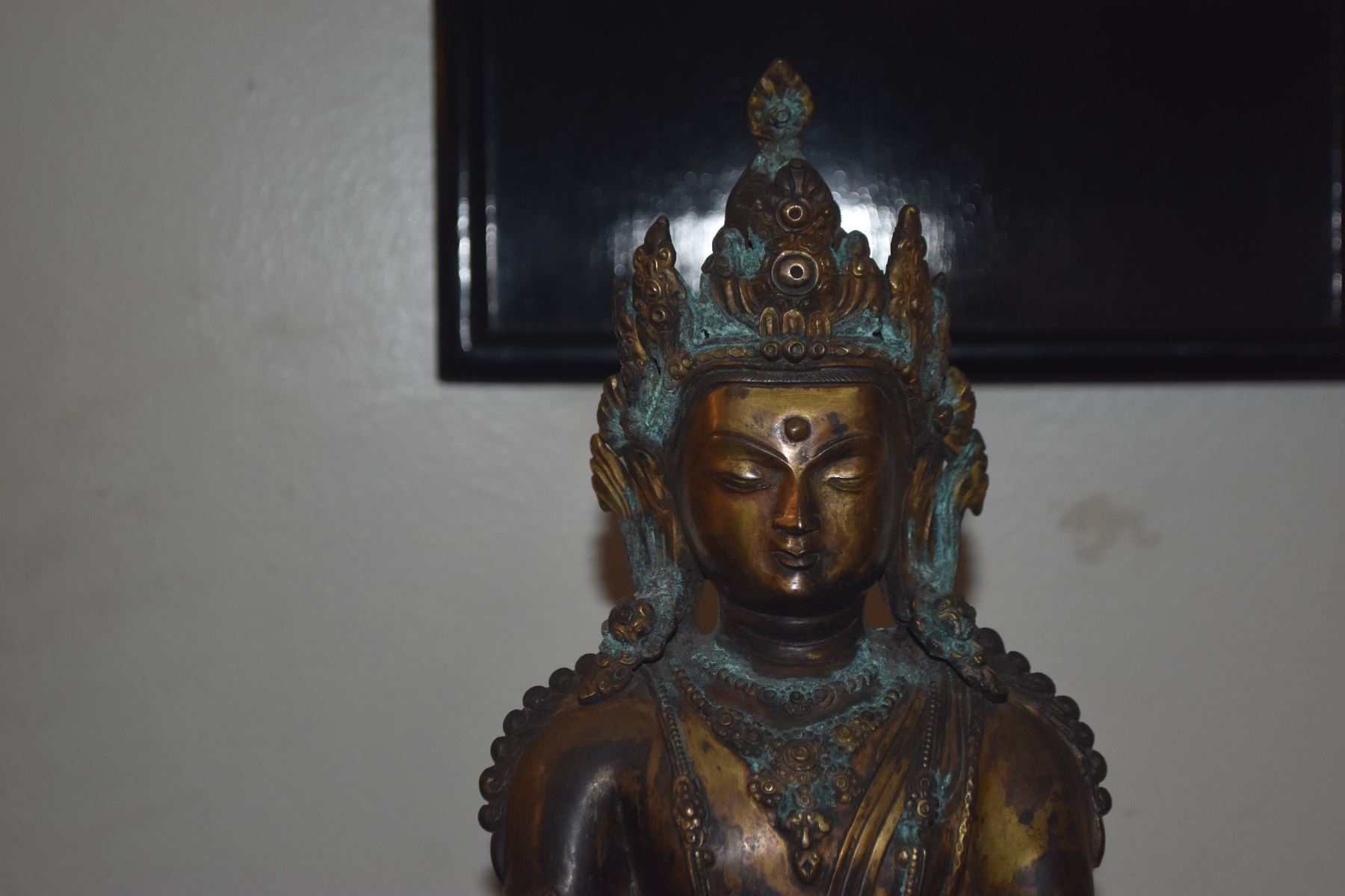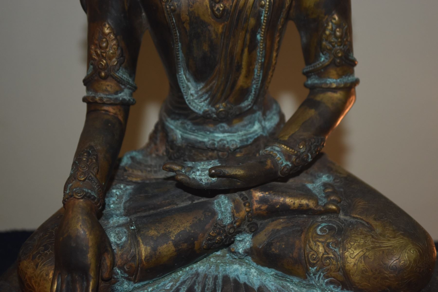 BRONZE TIBET SEATED SHAKYAMUNI BUDDHA; SIGNED (15 1/2")