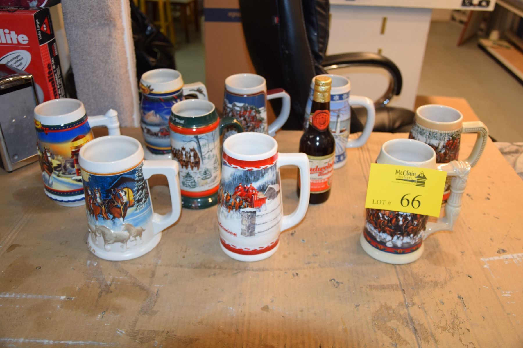 BUDWEISER BEER STEINS & VINTAGE BUDWEISER BOTTLE (12 PCS)