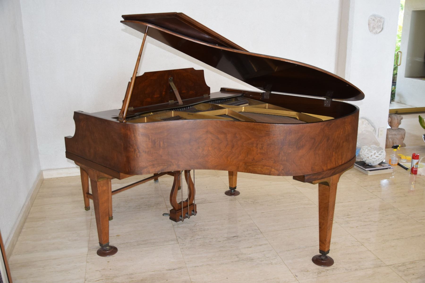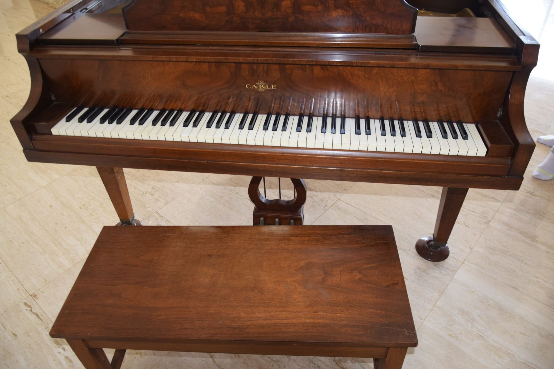 CABLE WALNUT & BURL WOOD BABY GRAND PIANO