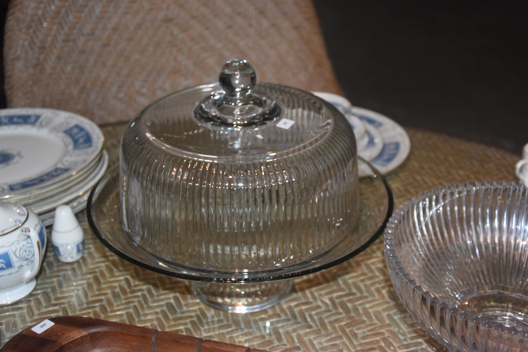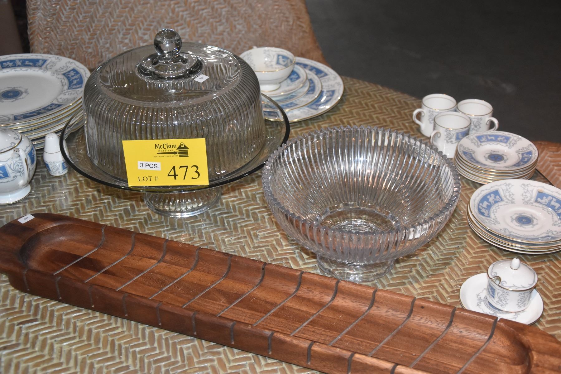 CAKE PLATE W/COVER, PEDESTAL BOWL & BREAD TRAY (3 PCS)