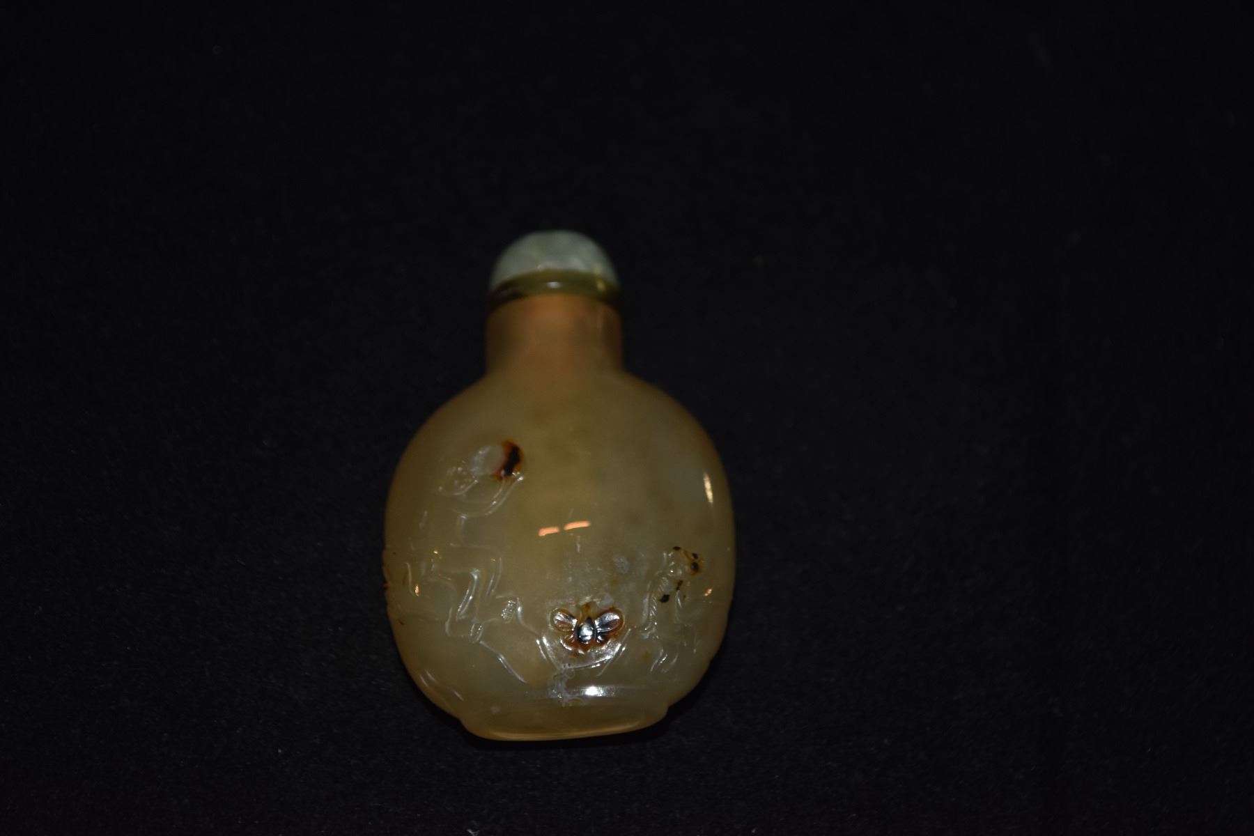 CARVED AGATE SNUFF BOTTLE W/MONKEYS