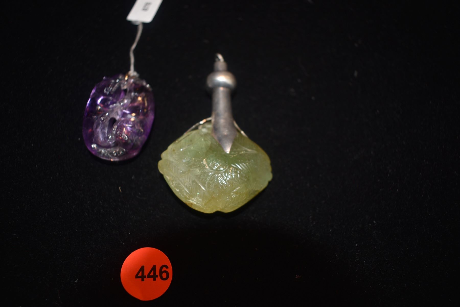 CARVED AMETHYST & CARVED BERYL PENDANTS (2 PCS)