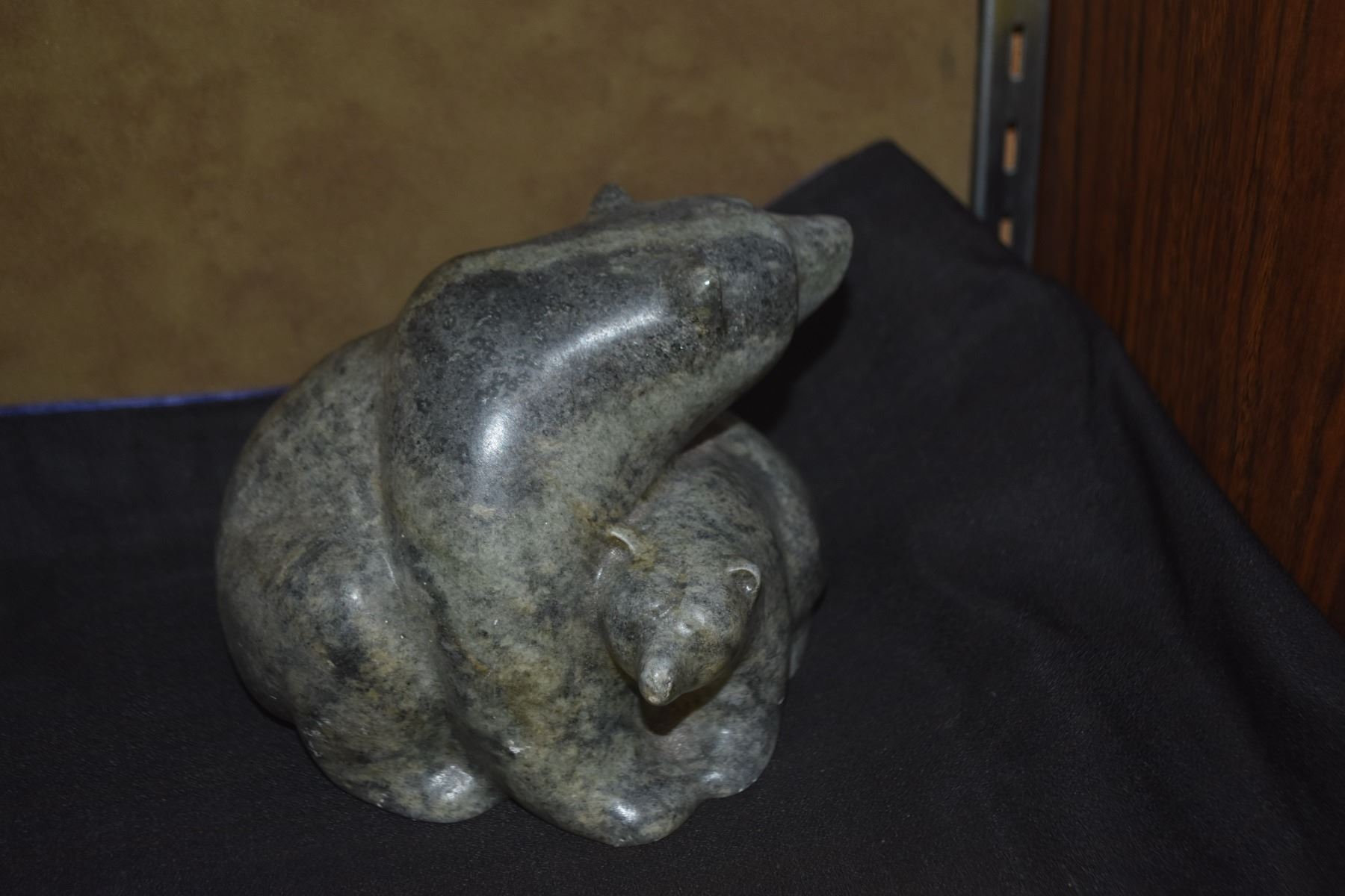 CARVED SOAPSTONE FIGURINE BEAR W/CUB