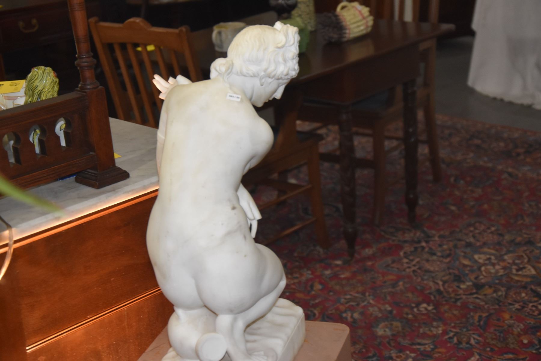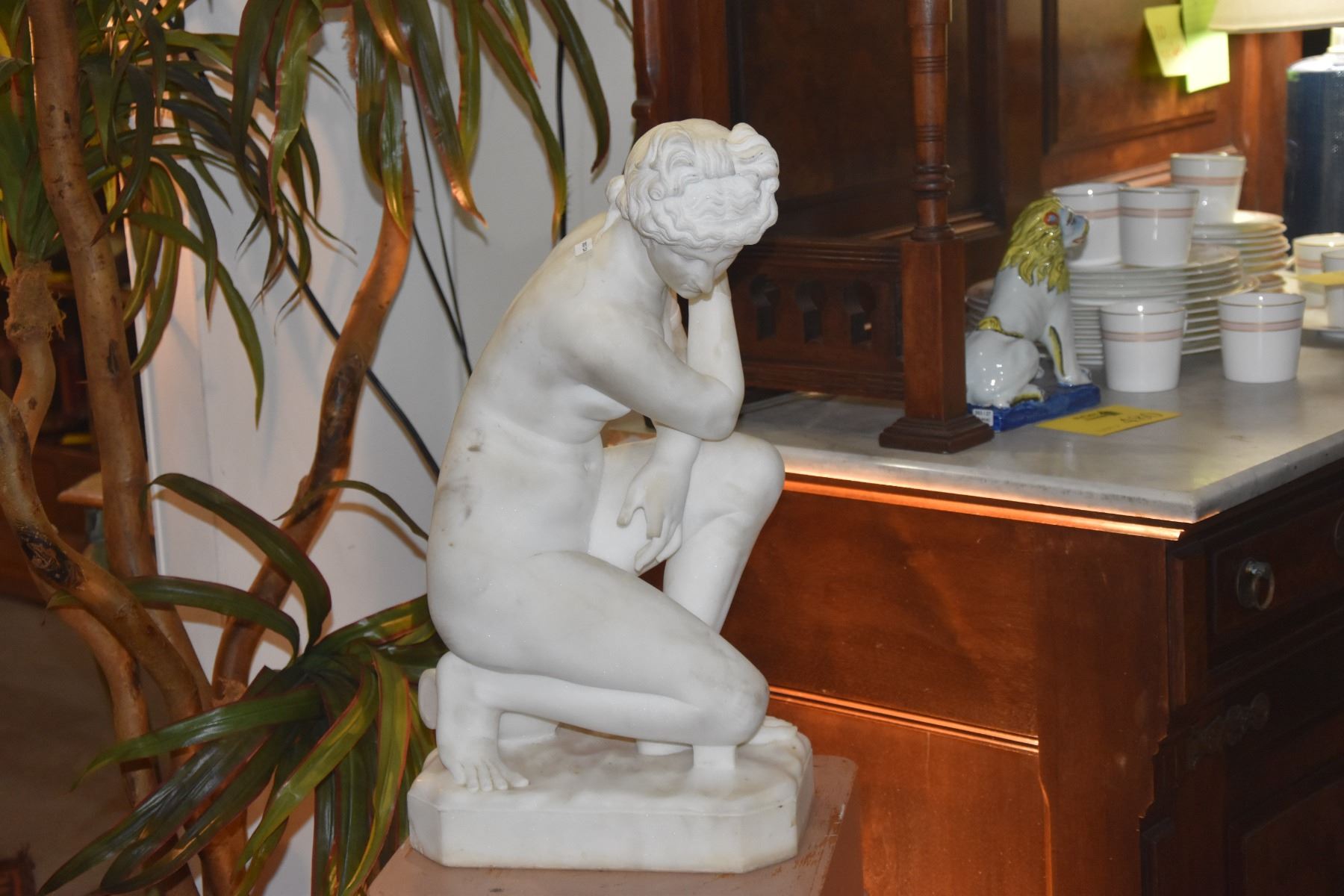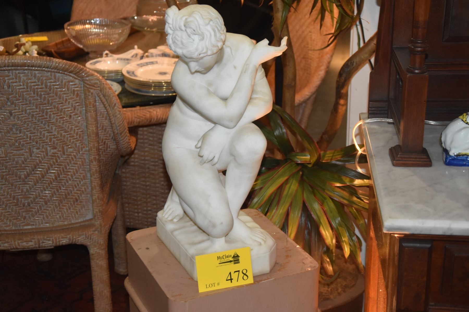 CARVED WHITE MARBLE STATUE, FEMALE NUDE (MISSING FINGERTIPS)