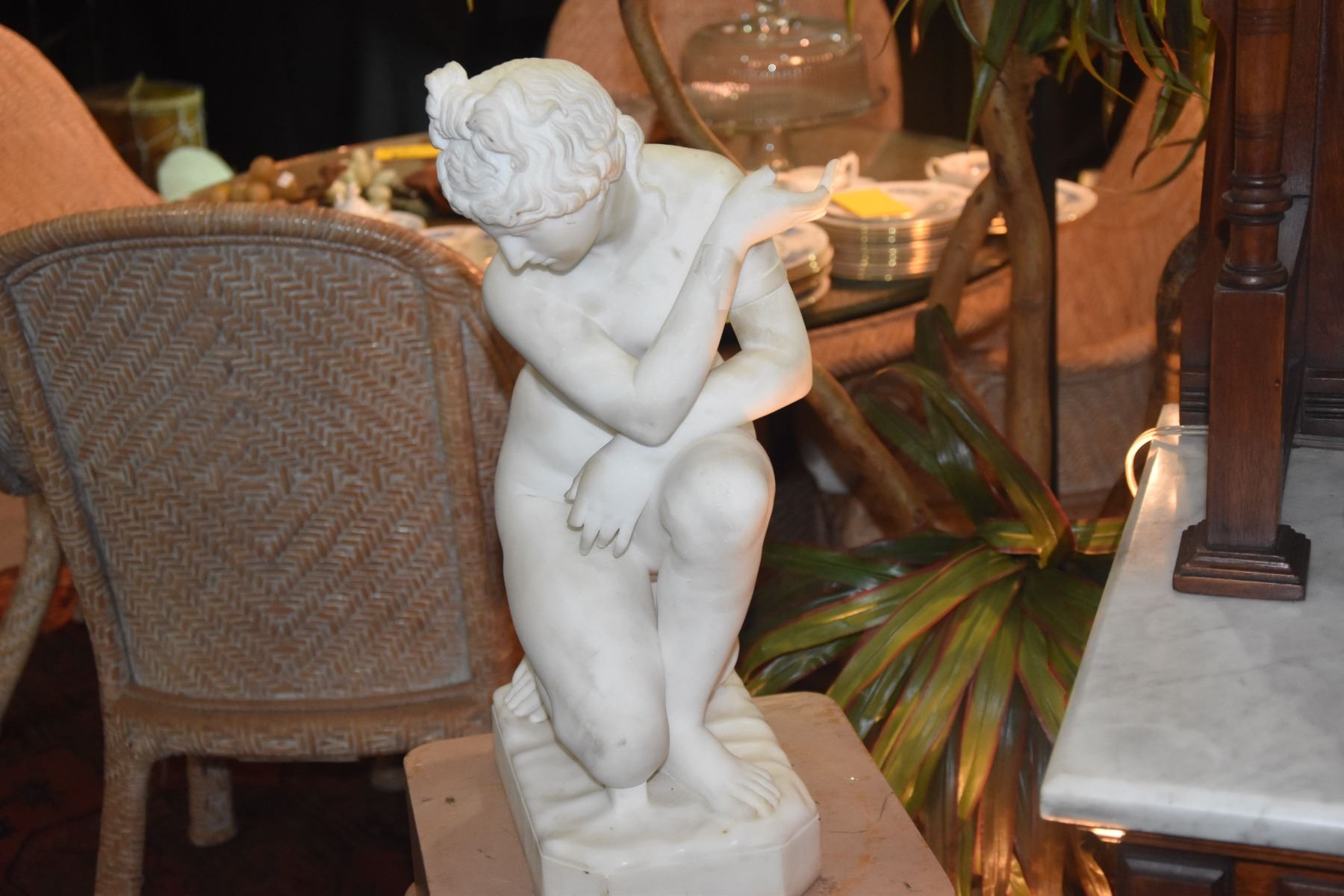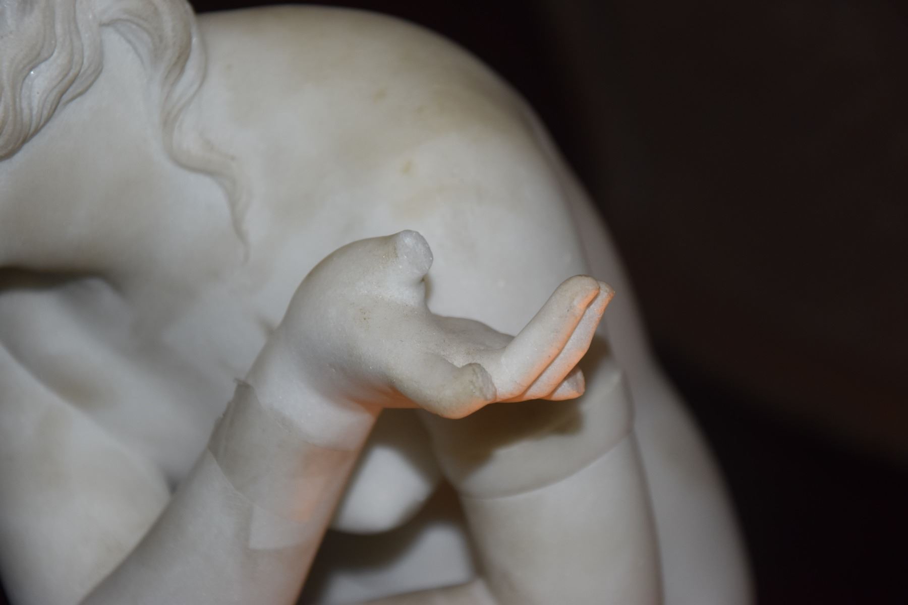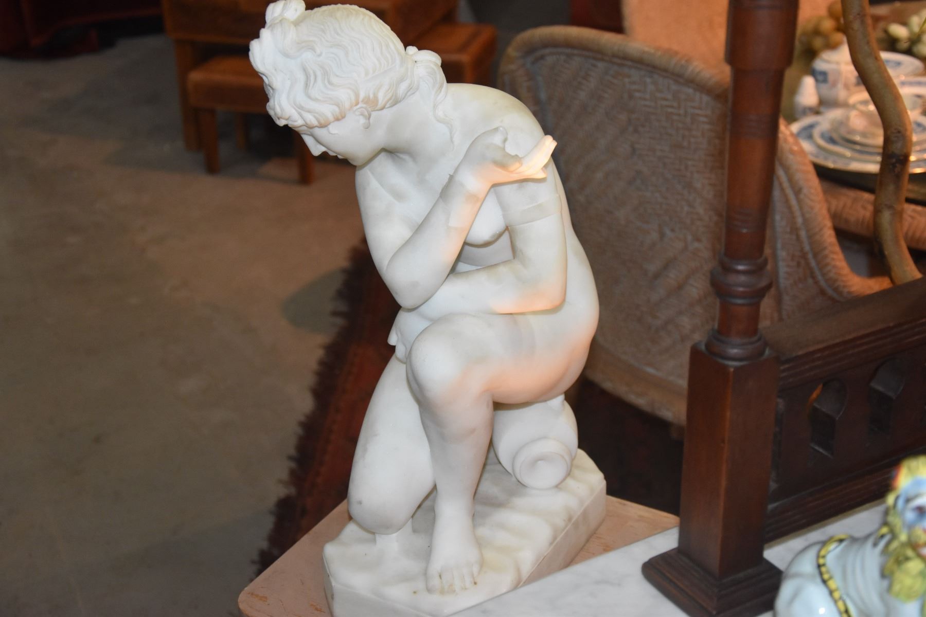 CARVED WHITE MARBLE STATUE, FEMALE NUDE (MISSING FINGERTIPS)