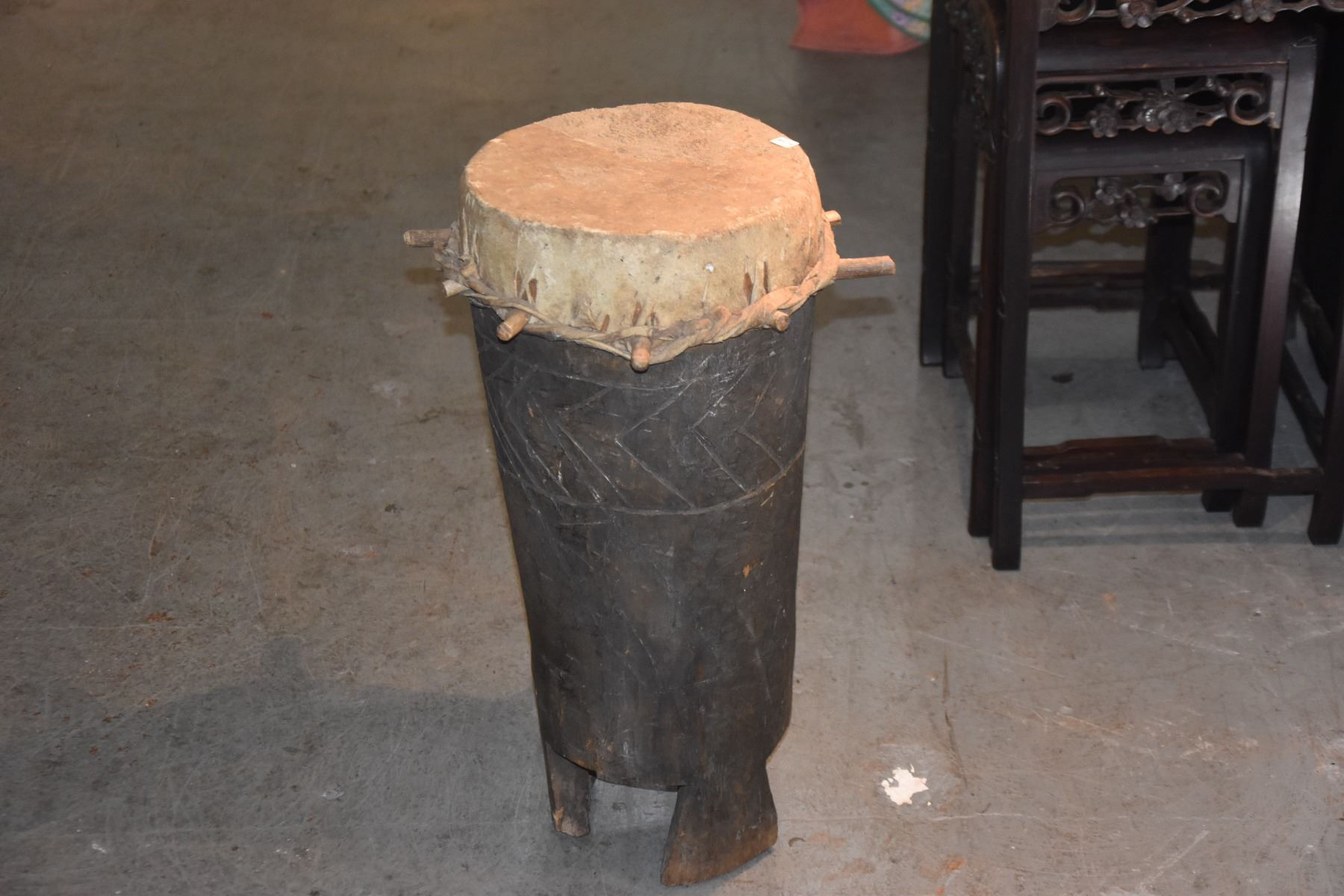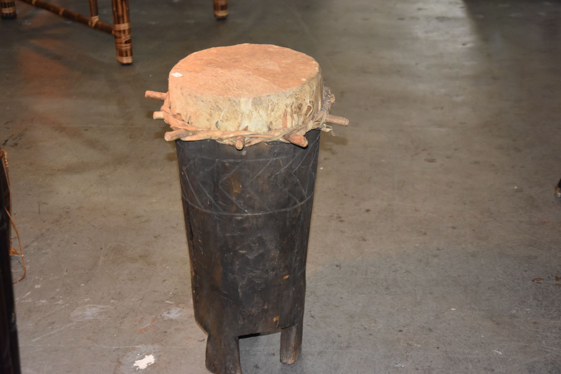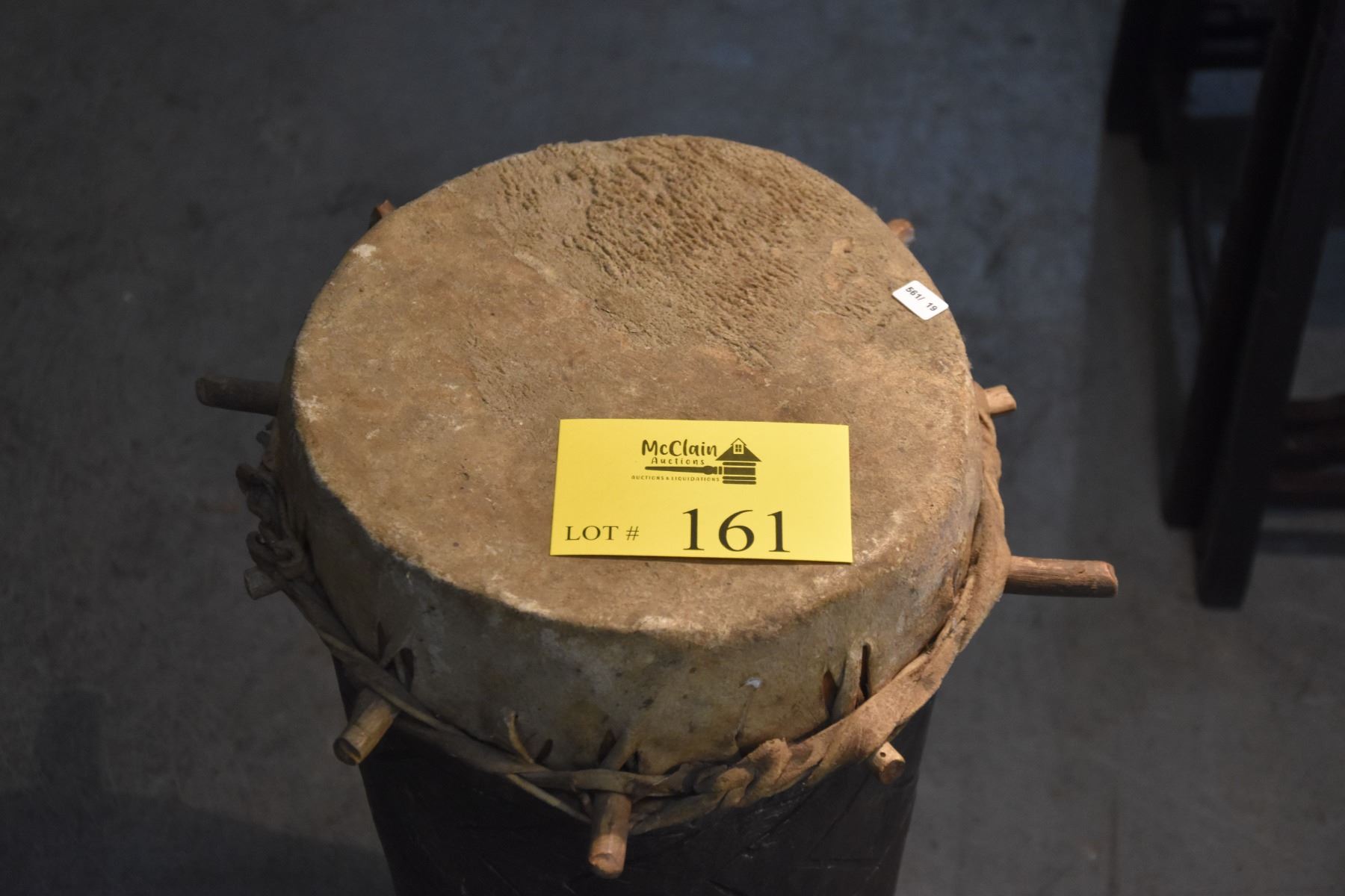 CARVED WOOD AFRICAN DRUM (23" X 12")