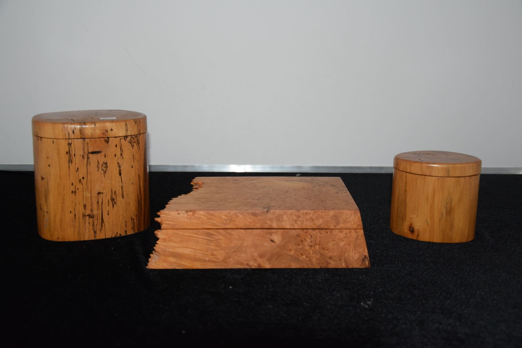 CARVED WOOD BOXES (1 SIGNED MICHAEL ELKAN STUDIO & 2 SIGNED J. ALLEN-HAWAII) (3 PCS)