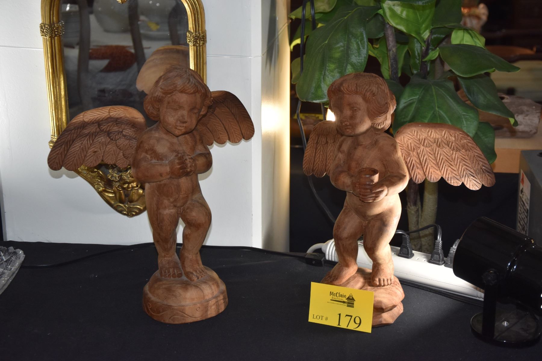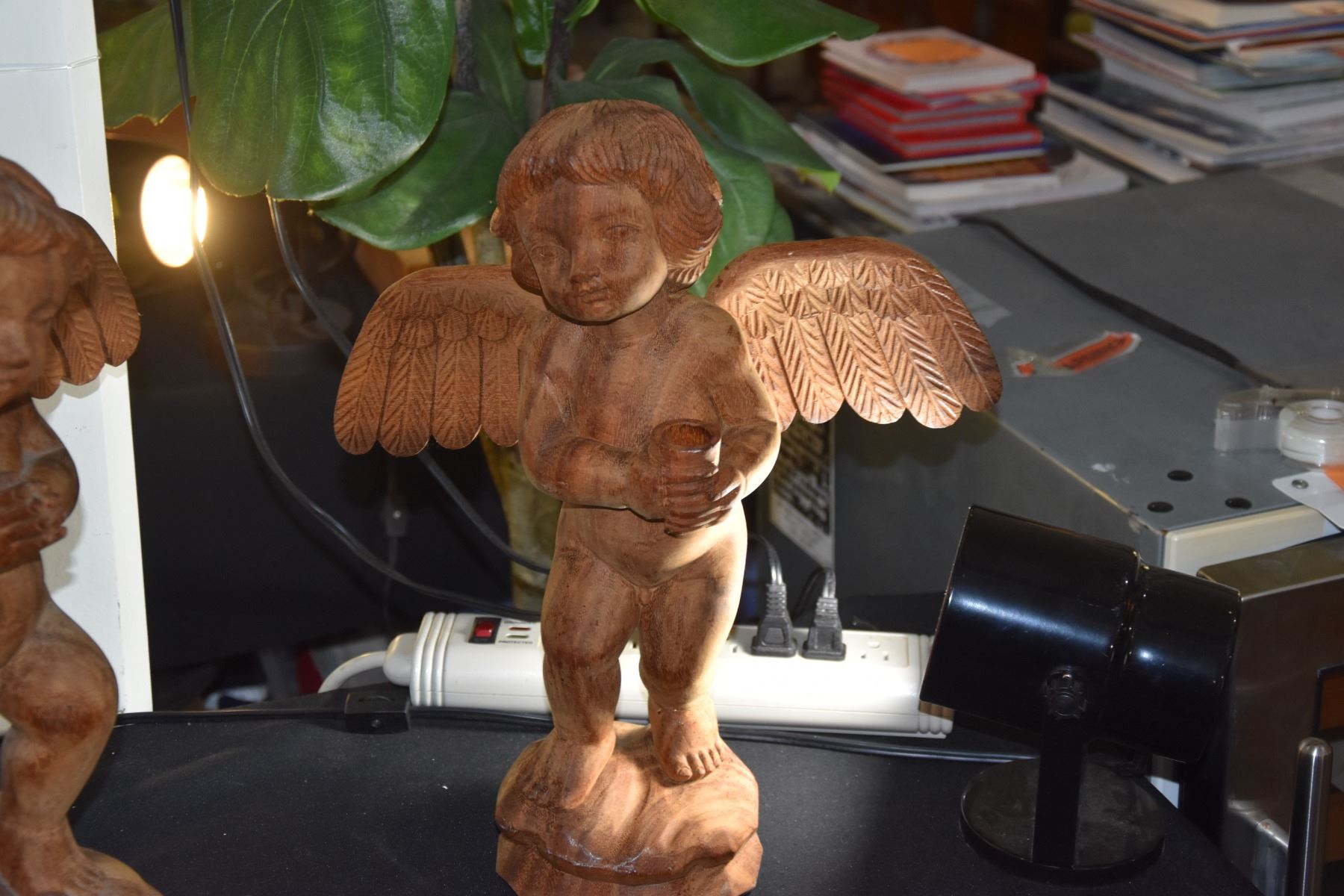 CARVED WOOD CHERUB CANDLE HOLDERS (PAIR)