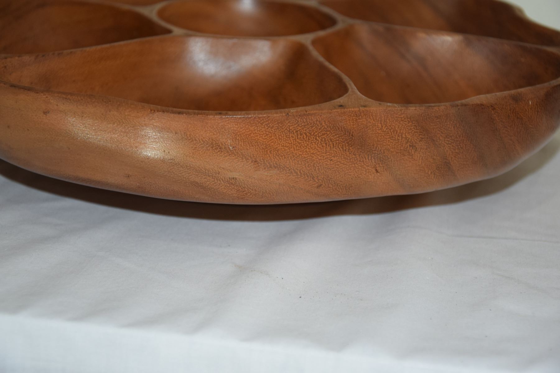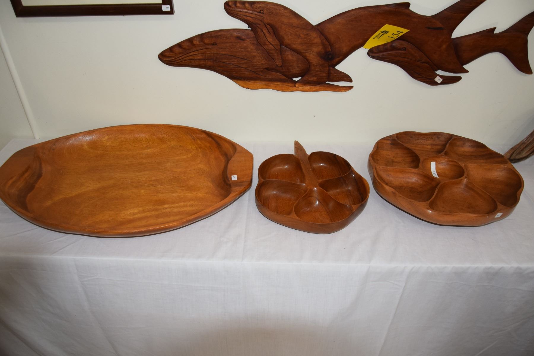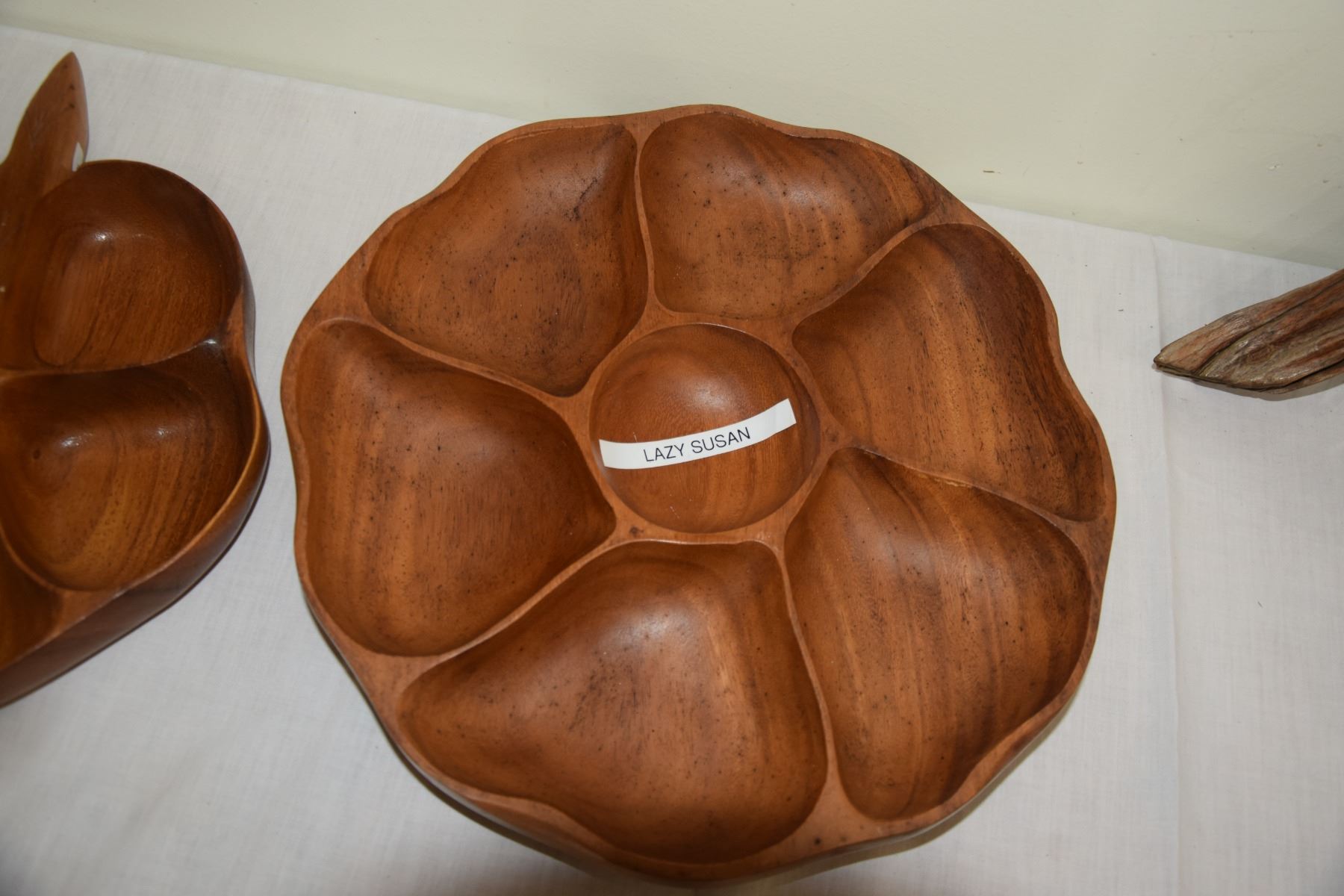 CARVED WOOD LAZY SUSAN, LEAF PUPU DISH & OVAL PLATTER (3 PCS)