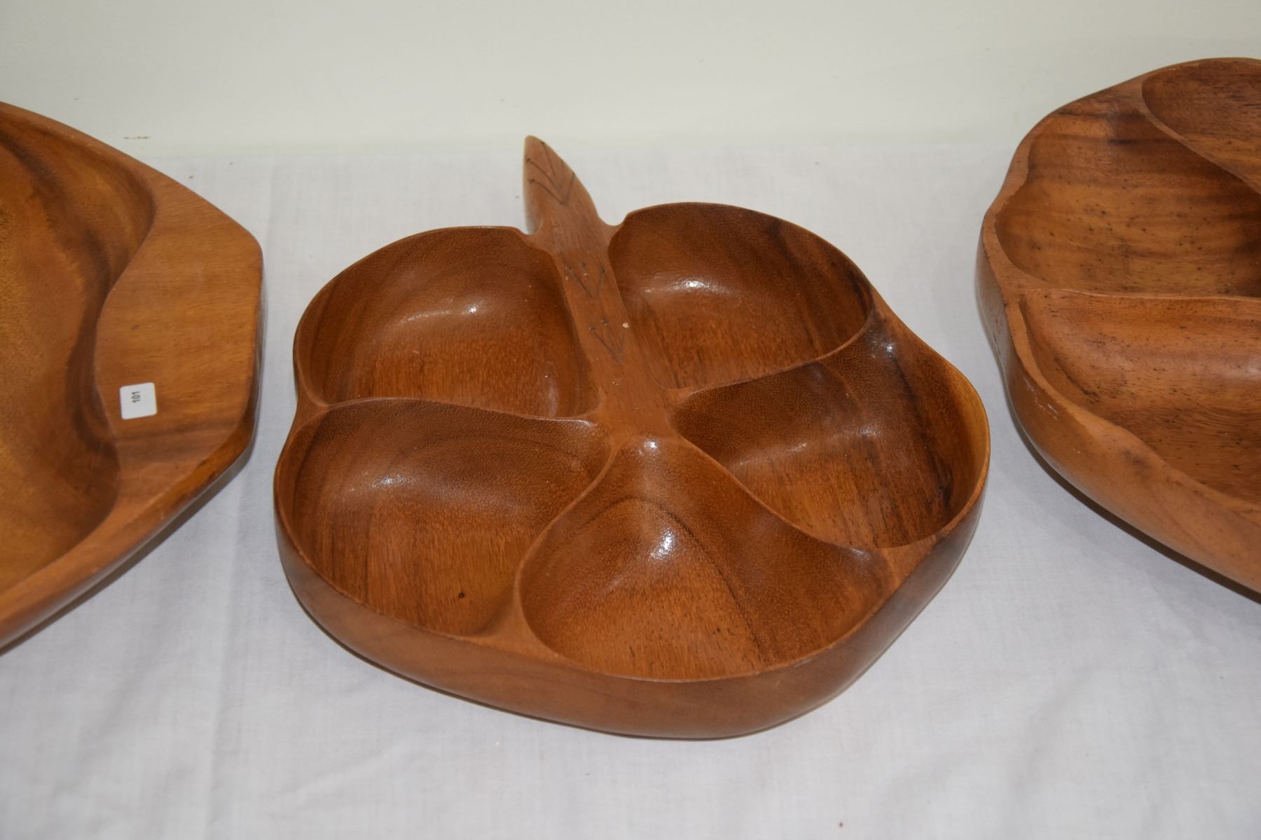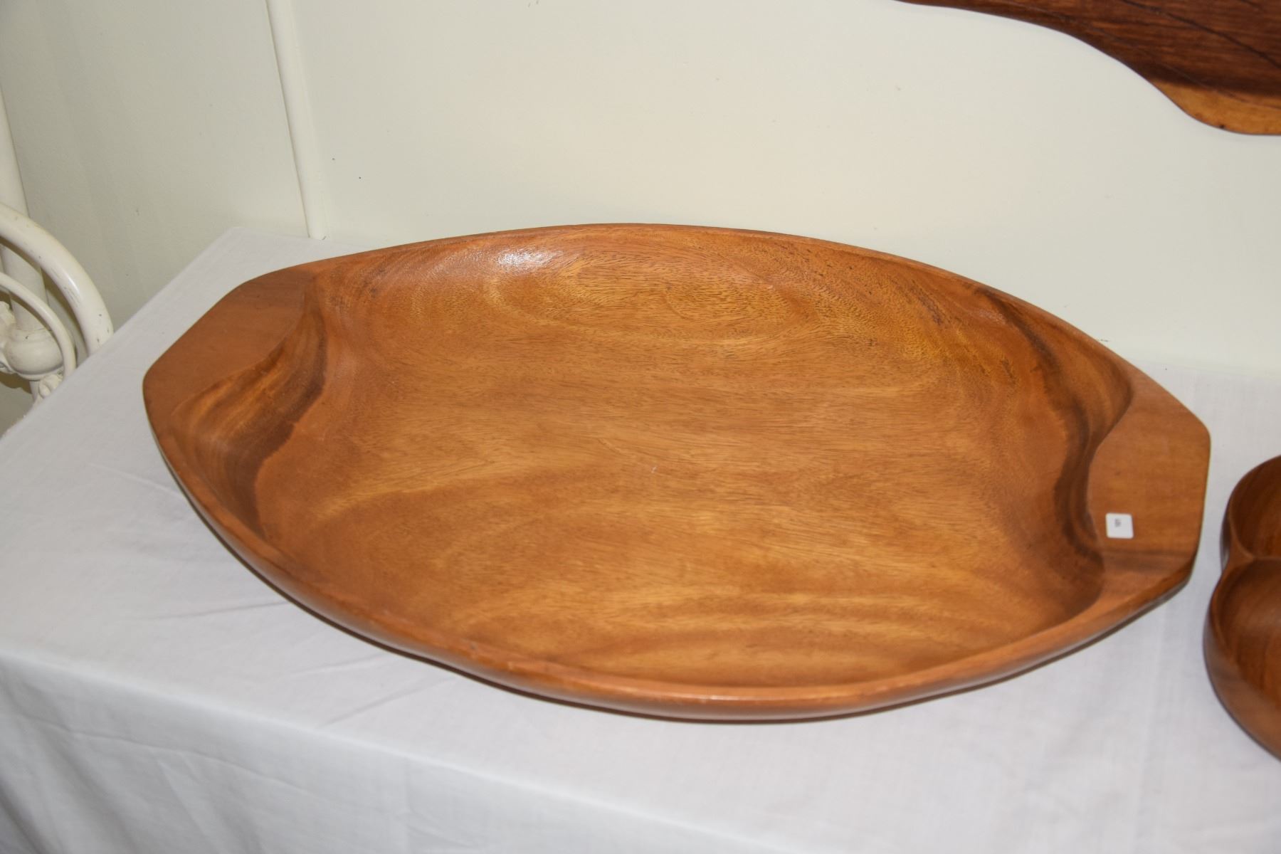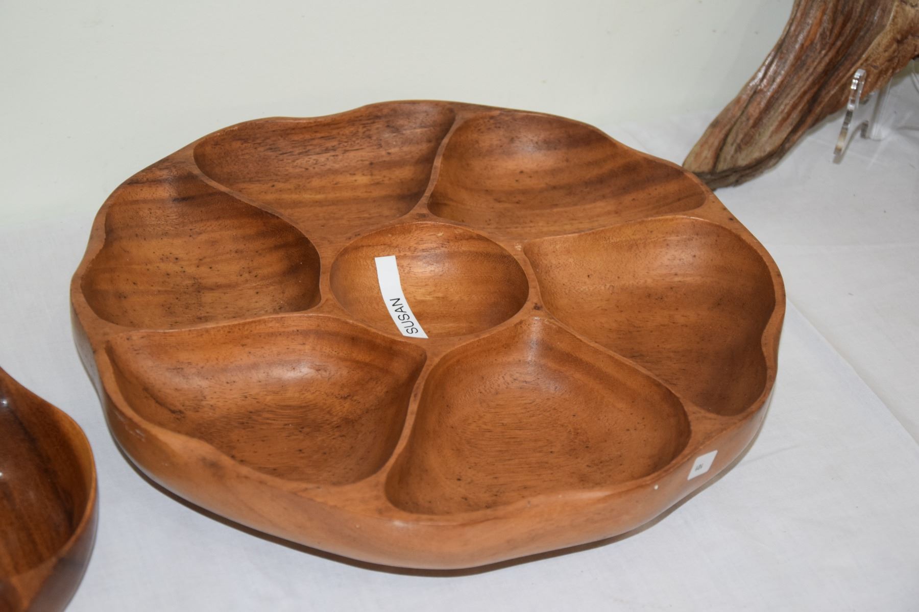 CARVED WOOD LAZY SUSAN, LEAF PUPU DISH & OVAL PLATTER (3 PCS)