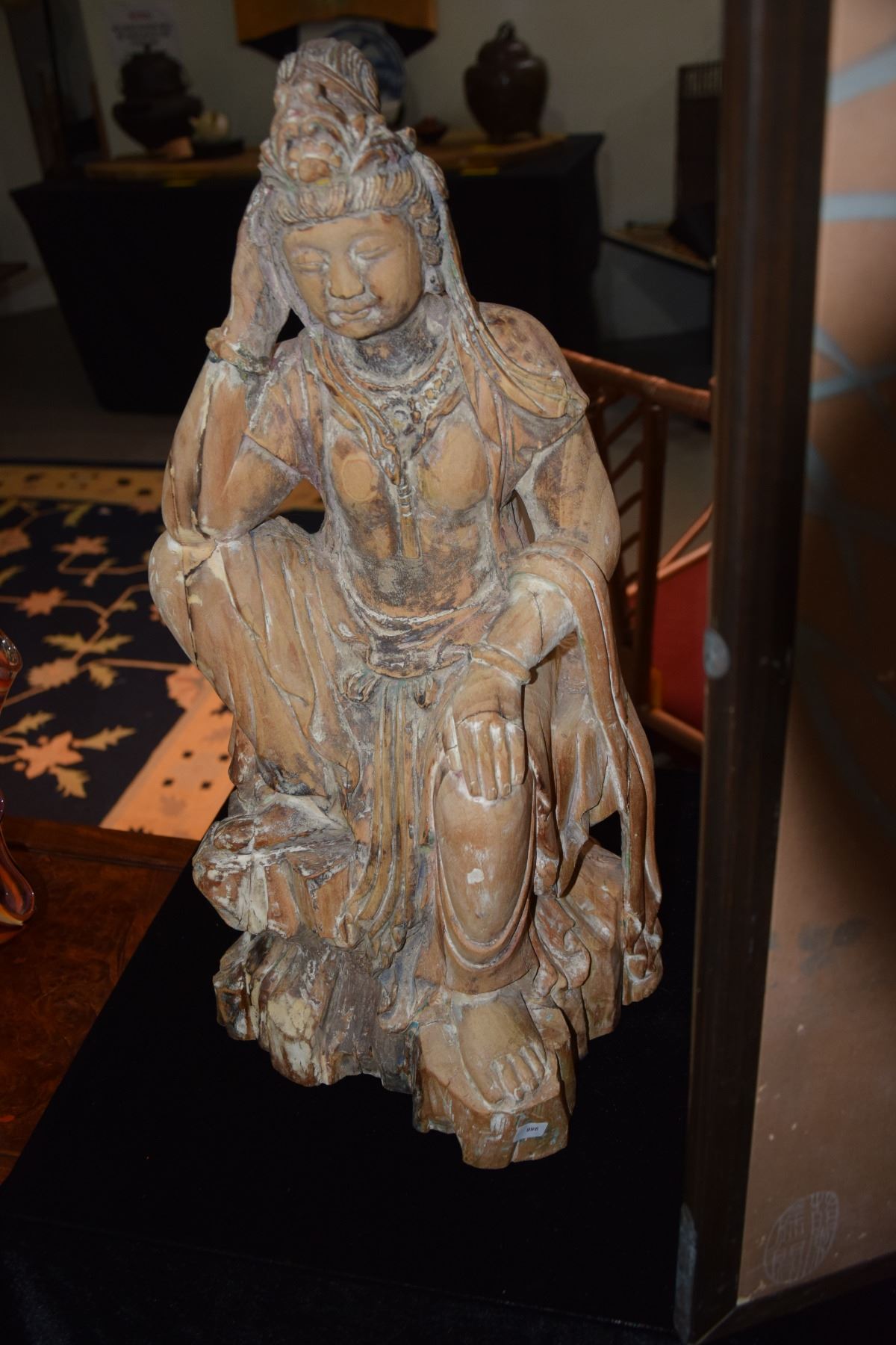 CARVED WOOD SEATED KWAN YIN (22" H)