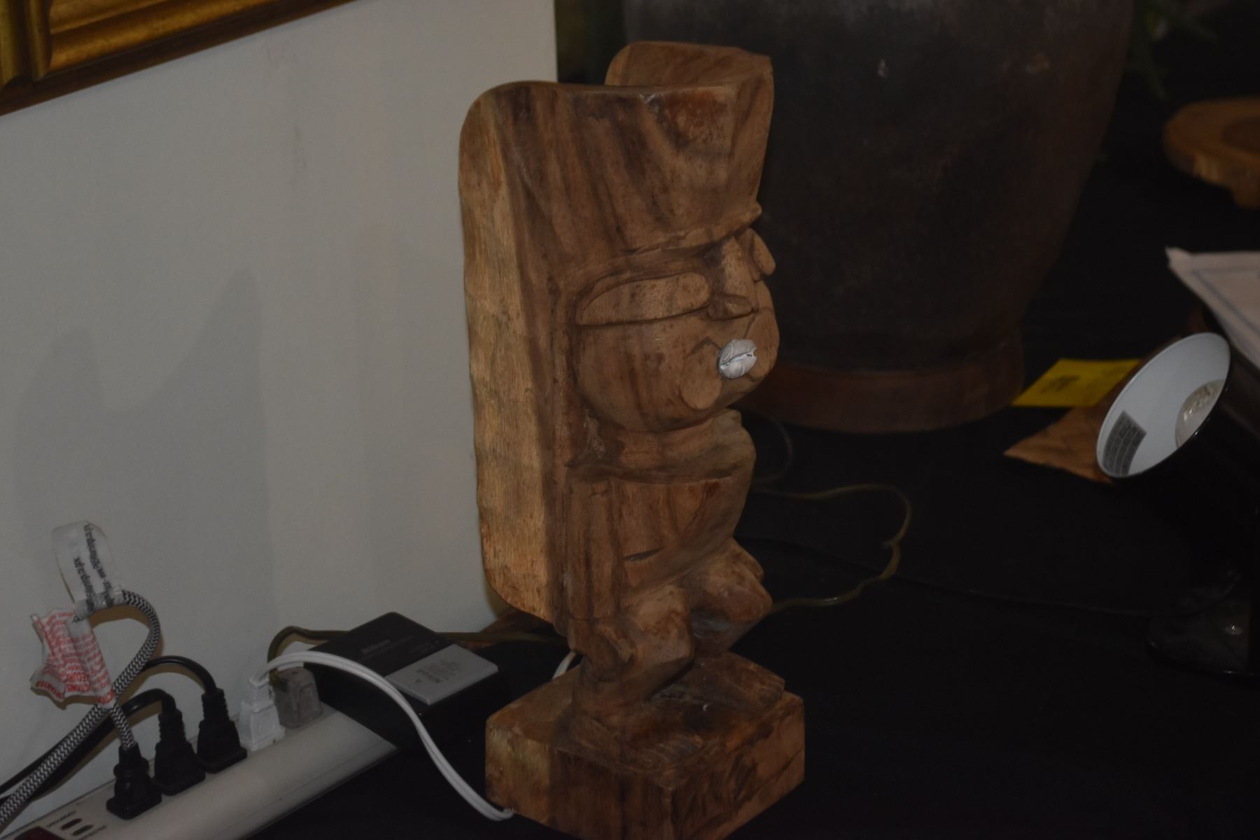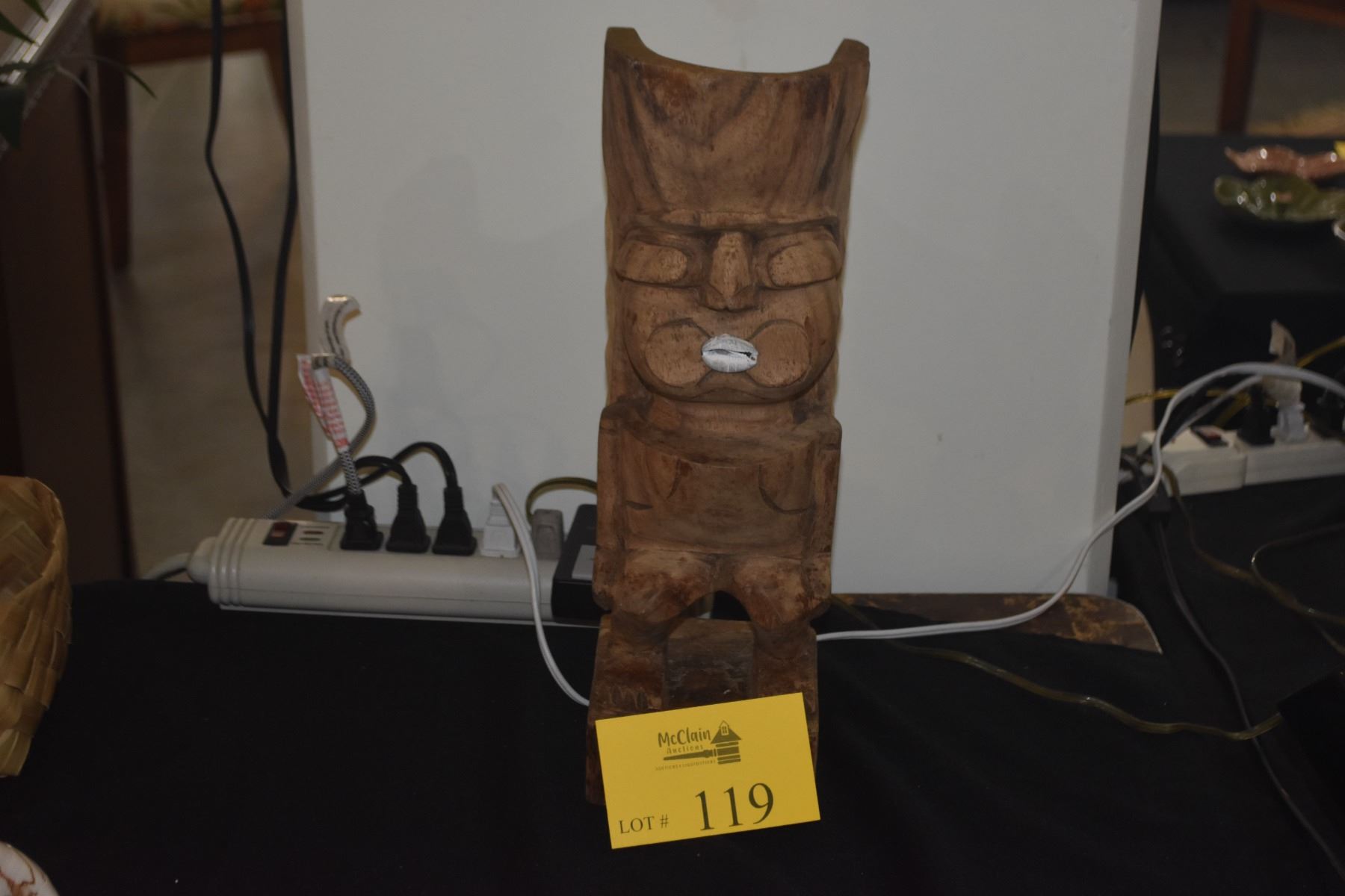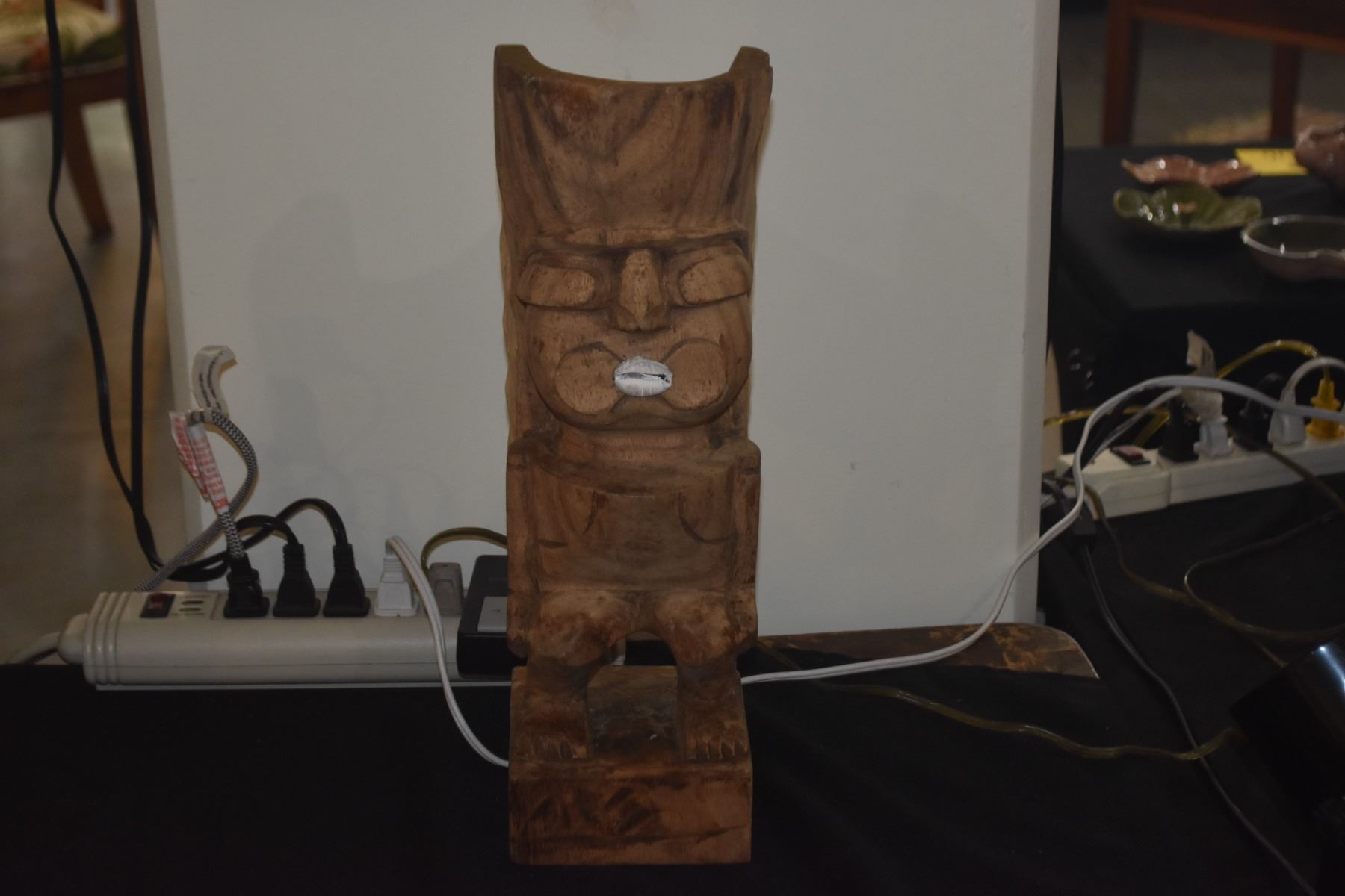 CARVED WOOD TIKI W/SHELL MOUTH (16")